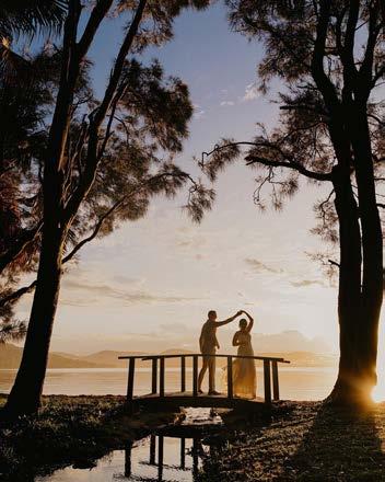 The front cover image showcases the serene beauty of the award-winning Palms Pavilion venue, nestled along the waterfront of Wallis Lake at Tiona Holiday Park in Pacific Palms. Its tranquil waters and lush surroundings create a picturesque scene, inviting guests to immerse themselves in the natural splendor of Pacific Palms in the Barrington Coast region.