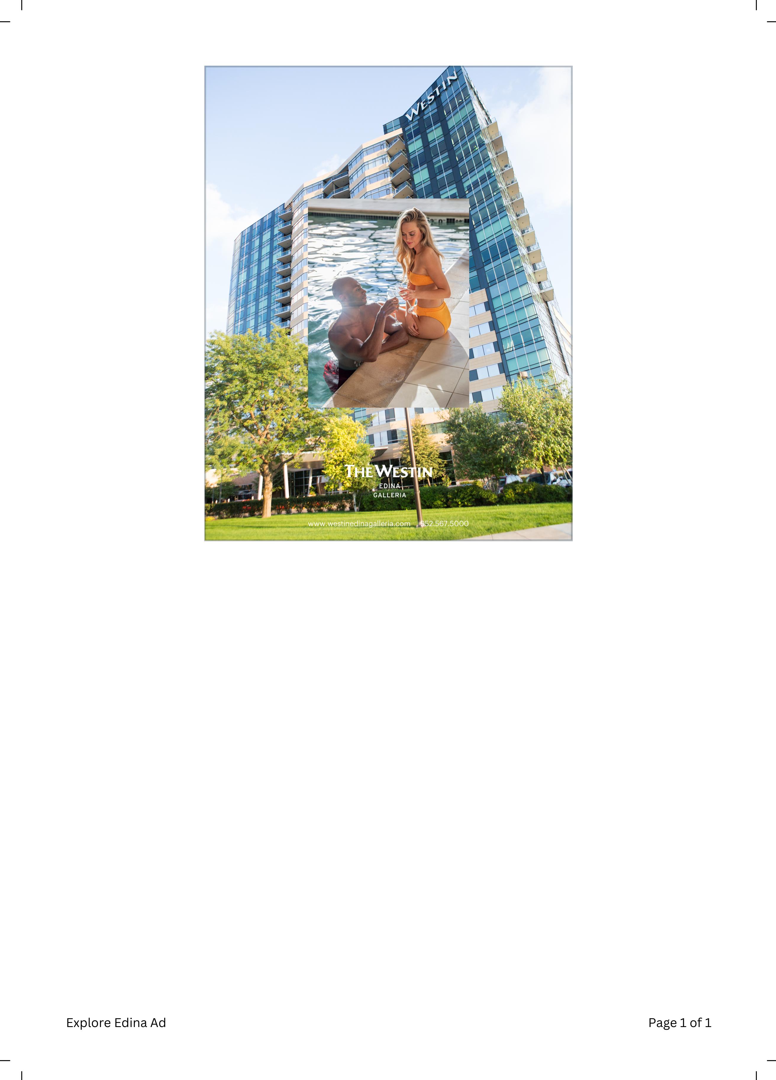 All rights reserved. COVER PHOTO TAKEN BY SUZANNE RESSEMAN AT THE EDINA FALL INTO THE ARTS FESTIVAL FOR PROOF ONLY - PROOF 3 Magazine Ad will run: Explore Edina 2017 Ad Size: 1/3 square 4.625”x 4.875” YOUR HOME AWAY FROM HOME