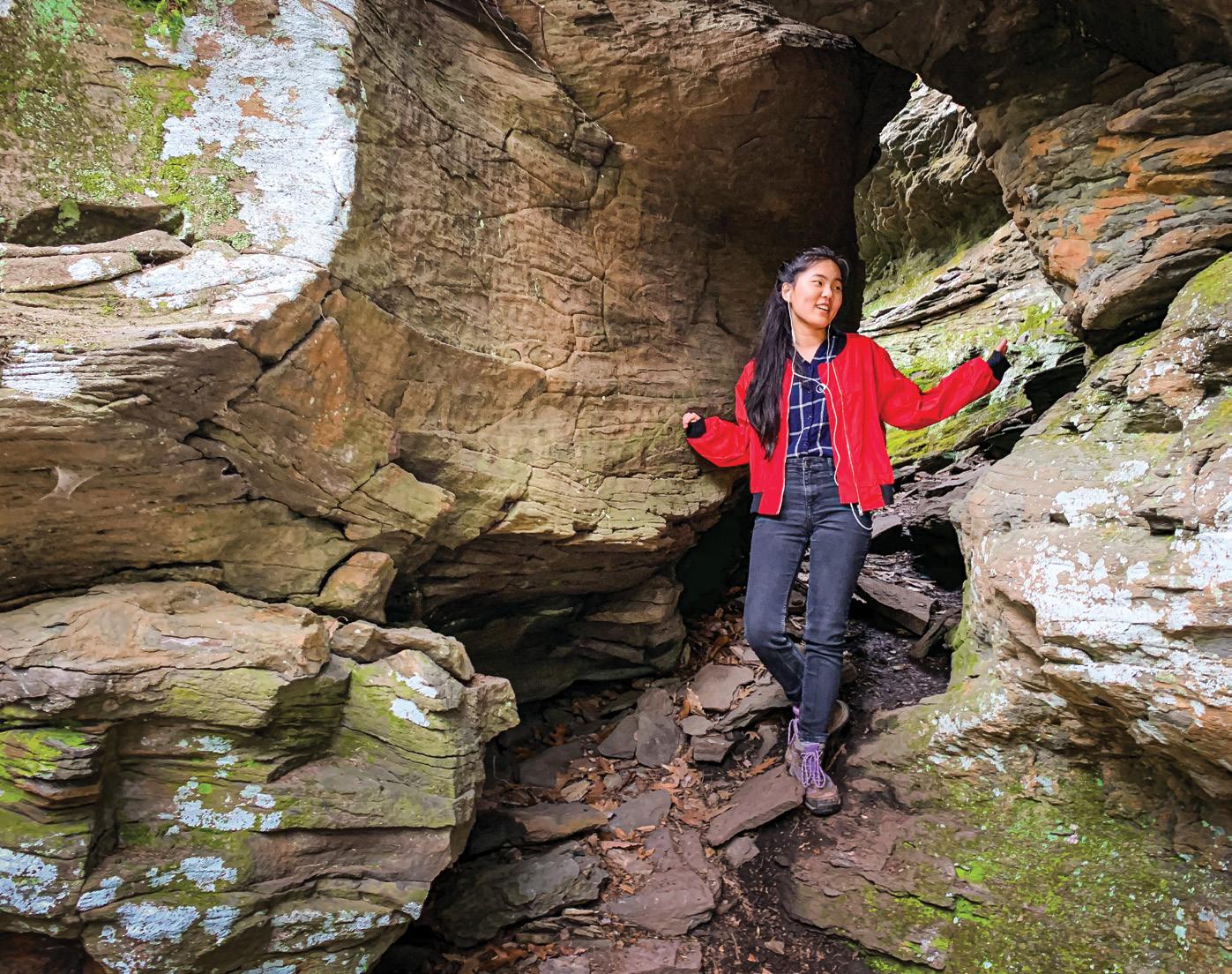 of hemlock, white pine, and mountain laurel, which blooms so fantastically from late May through early June. Fun stream crossings and multiple footbridges along the route are a dreamy aesthetic bonus. The ruins at the falls date back about 200 years when this intersection was a major crossroads where farmers brought their grain for milling. This trail can be a little muddy, so it’s a good idea to pack proper hiking footwear.