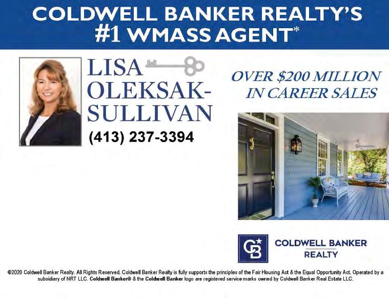 THE REGION’S RECOGNIZED CATALYST, LEADER, AND INFLUENCER ON ECONOMIC GROWTH AND WORKFORCE DEVELOPMENT. In Western Massachusetts, businesses are in the center of the Northeast's major markets while operating at lower costs, utilizing one of the nation's leading workforces and enjoying a more a ordable, higher standard of living in any of our urban, suburban, rural or college town settings. www.westernmassedc.com 1441 Main Street Spring eld, MA 01103 (413) 755-1368 Are You Considering Buying or Selling a Home? Call Lisa and Get Results in 2023 *per MLS 01/01/2022- 12/31/2022 ColdwellBankerHomes.com Westfield, MA 01085 Phone 413.237-3394