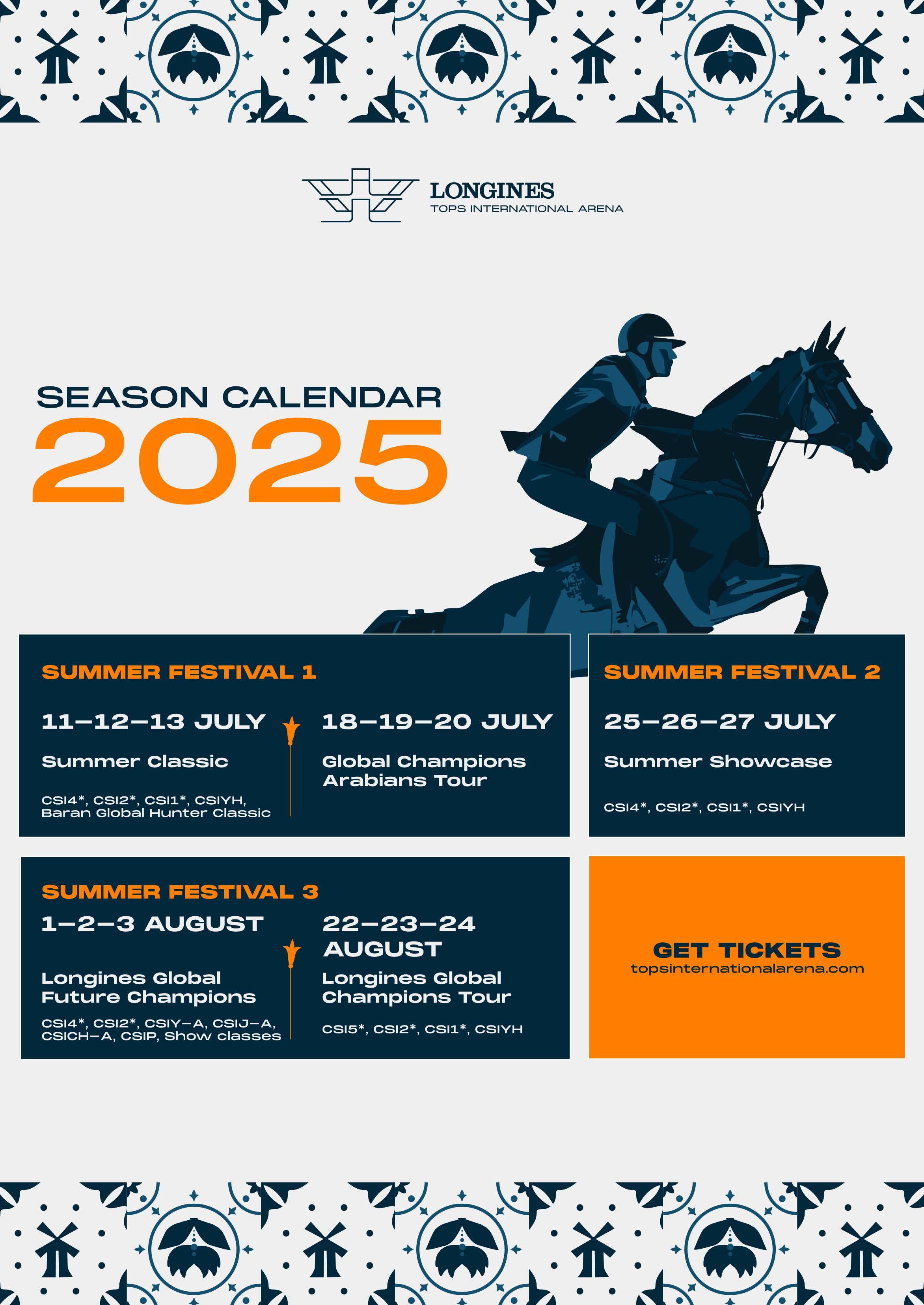 The much-anticipated Longines Global Champions Tour title, won by Max Kühner in 2024, is back up for grabs. Meanwhile, the thrilling pursuit of the coveted Golden Tickets continues, with only 1 available for qualification per event into the prestigious Longines Global Champions Tour Super Grand Prix at the GC Playoffs in November. These tickets are awarded to winners of the LGCT Grand Prix classes at each tour stop.