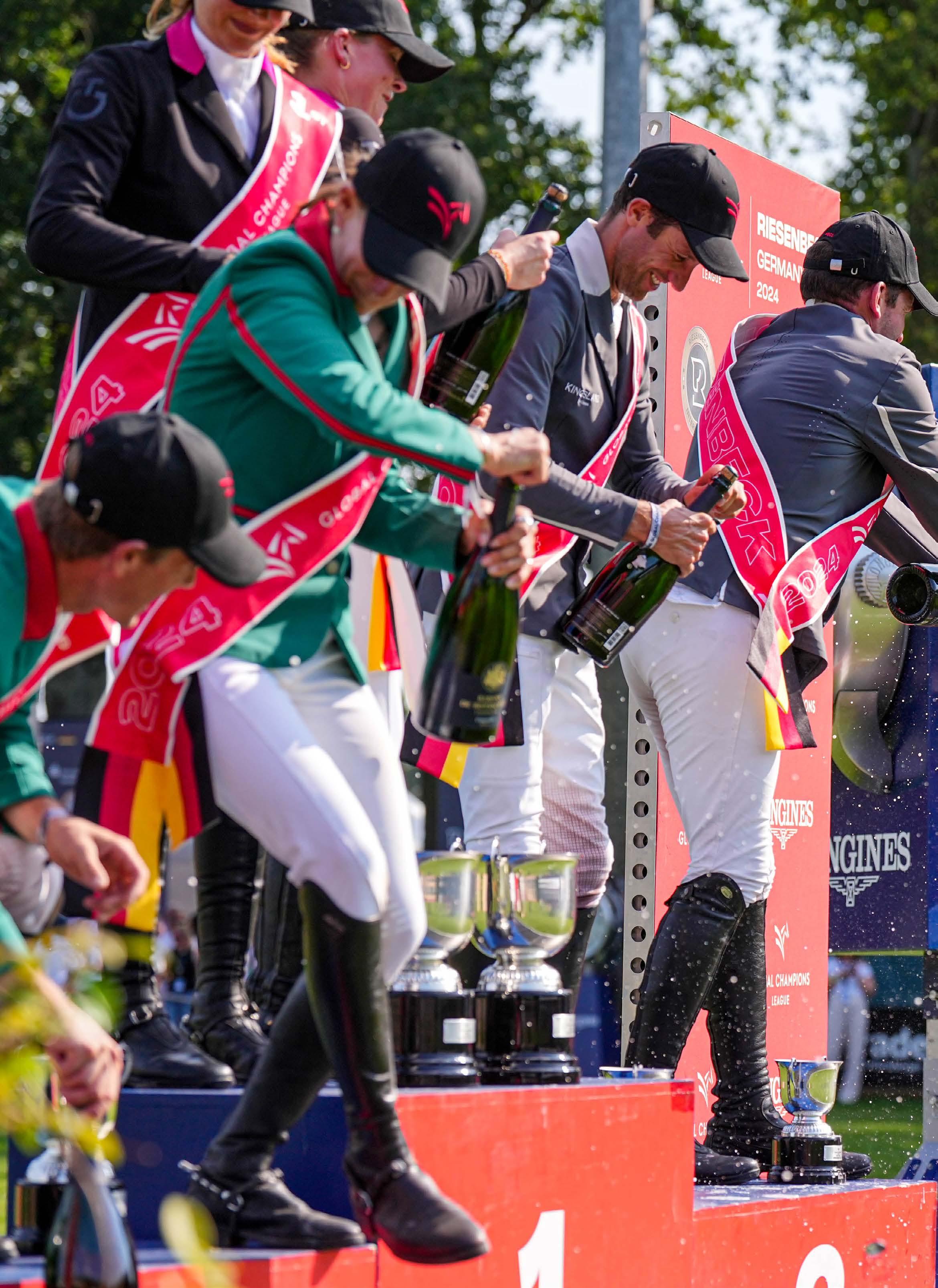 Es war ein weiterer herausragender Erfolg für das reine Frauen Team Cannes Stars powered by Iron Dames, bei dem das deutsche Duo aus Sophie Hinners und Katrin Eckermann ihren beeindruckenden vierten Sieg der Saison feierten. Die Rome Gladiators powered by ClipMyHorse. TV belegten einen starken zweiten Platz, während das heimische Team Riesenbeck International powered by Kingsland Equestrian den dritten Platz erzielte. Der mit 500.000 € dotierte Longines Global Champions Tour-Grand Prix von Riesenbeck bot ein spannendes Finale: Der junge Belgier Thibeau Spits sicherte sich mit „Impress-K van’t Kattenheye Z“ seinen größten Karrieresieg und damit ein Ticket für den begehrten LGCT Super Grand Prix. Damit verwies er den heimischen Favoriten Marcus Ehning mit „Coolio 42“ auf den zweiten Platz. Den dritten Platz belegte Abdel Saïd mit „Bonne Amie“.
