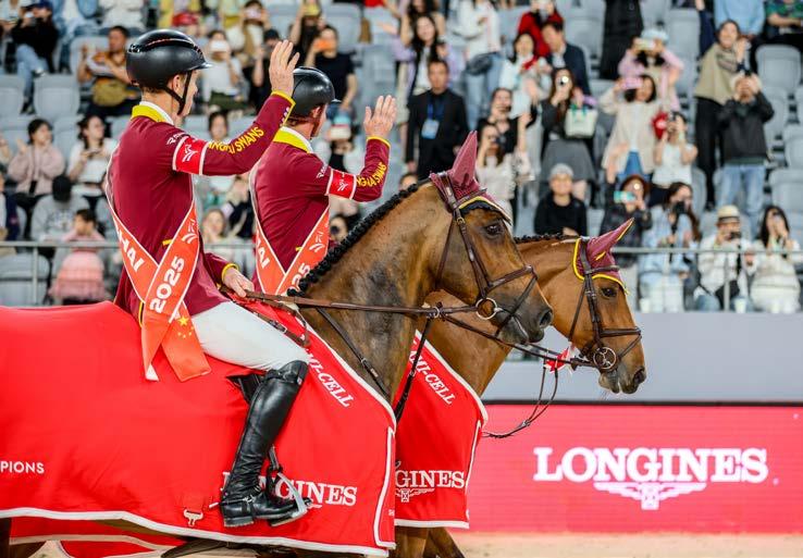 The 2025 season blasted off in spectacular style at Longines Arena at Al Shaqab launching another extraordinary show jumping odyssey across the world. Anticipation was high as the 17 stage circuit kick started beneath the magnificent architecture of the world class equestrian arena. The scene was set with luxurious VIP Hospitality and high quality facilities for visitors. It was first class treatment all the way for the world’s greatest riders and horses intent on making their mark early in the Longines Global Champions Tour and GCL Championships. Cannes Stars Powered by Iron Dames made a ruthless early move to win the opening GCL with only one time penalty against their stunning performance. The Longines Global Champions Tour Grand Prix of Doha was breathtaking. Abdel Saïd and Bonne Amie scored a second consecutive victory in a masterclass of speed and precision beating Daniel Deusser and Gangster VH Noddevelt into secondo place and Abdulraman Alrajhi and Ventago into third. QATAR 27 FEB - 1 MAR ‘25
