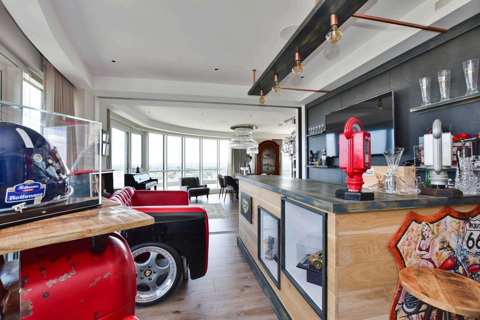 As you step inside this grand duplex, you are welcomed by a sumptuous living space that radiates refinement and class. The interior design seamlessly combines modern flair with timeless elegance, showcasing premium materials and impeccable attention to detail in every corner.