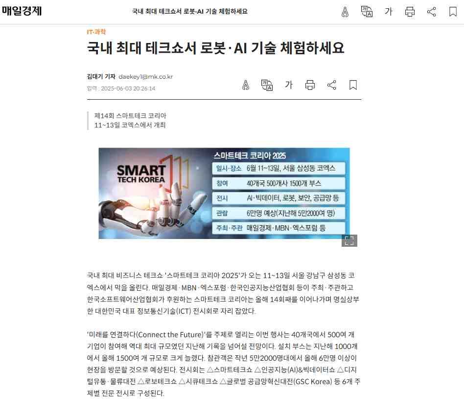 MinistryofTrade,IndustryandEnergy│KoreaElectronicsAssociation│ ArtificialIntelligenceIndustryAssociation│ KoreaInformationSecurityIndustryAssociation│ TheKoreaChamberofCommerceandIndustry│ SmartManufacturingInnovationBusinessAssociation│ MaeilBusinessNewsKorea│MBN│RobotNews│AITimes│ExporumInc.