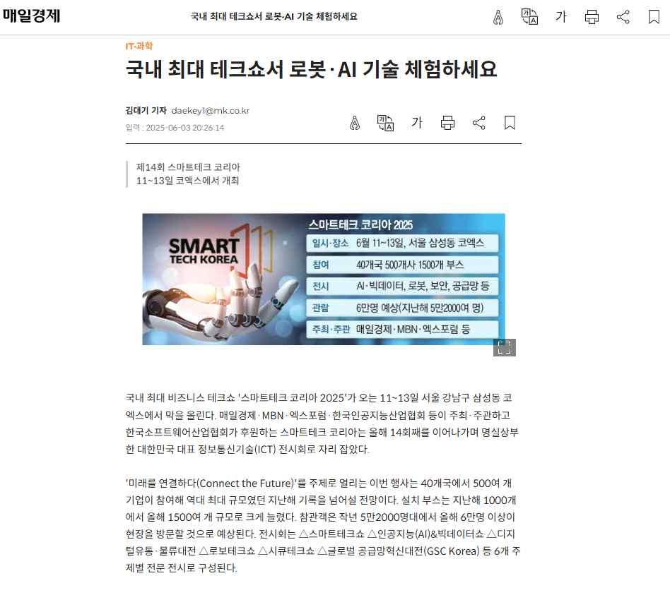 MinistryofTrade,IndustryandEnergy│KoreaElectronicsAssociation│ ArtificialIntelligenceIndustryAssociation│ KoreaInformationSecurityIndustryAssociation│ TheKoreaChamberofCom늘merceandIndustry│ SmartManufacturingInnovationBusinessAssociation│ MaeilBusinessNewsKorea│MBN│RobotNews│AITimes│ExporumInc.