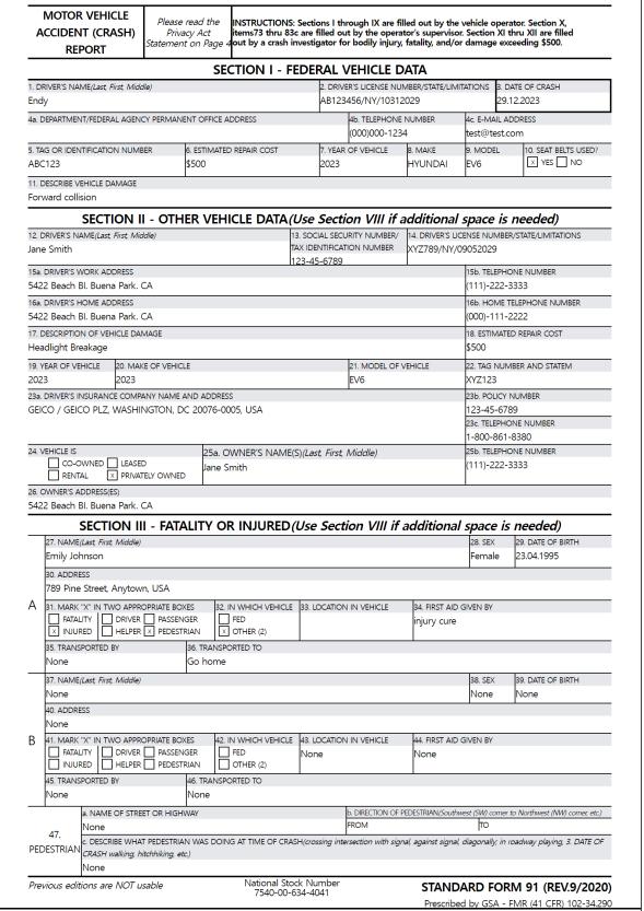 *Source : Myren, GSA_Motor Vehicle Accident(Crash) Report Standard, U.S. Government Departments, Agencies 6