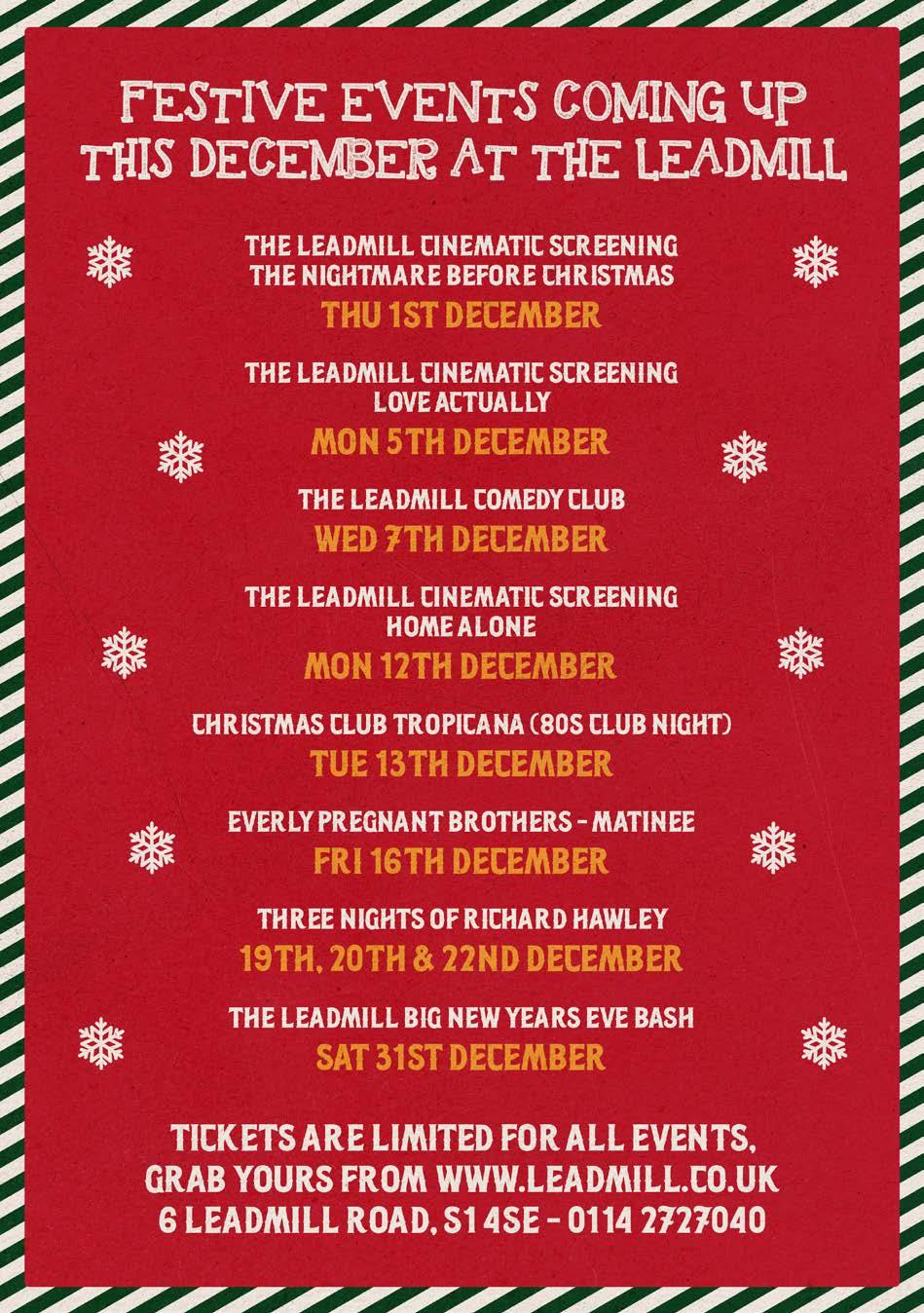 To celebrate the festive season, The Leadmill Cinematic returns with a series of special Christmas film screenings taking place throughout December. The iconic venue will transforming into an alternative winter wonderland showing A Nightmare Before Christmas on Friday 2nd December, Love Actually on 5th December and Home Alone on 12th December. Natually, there’ll also be mulled wine, candy cane cocktails, pick ‘n’ mix and other sweet treats on offer!