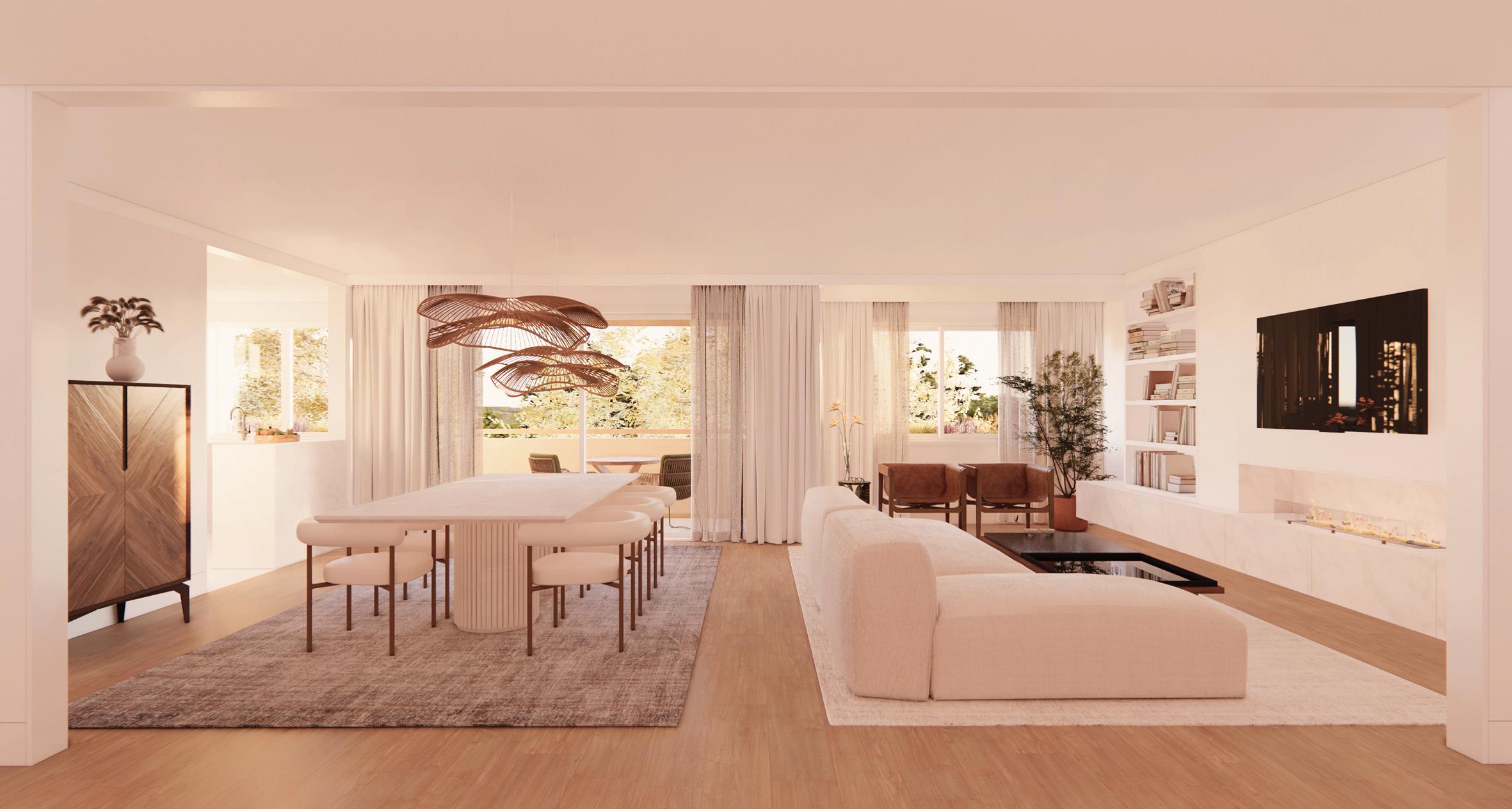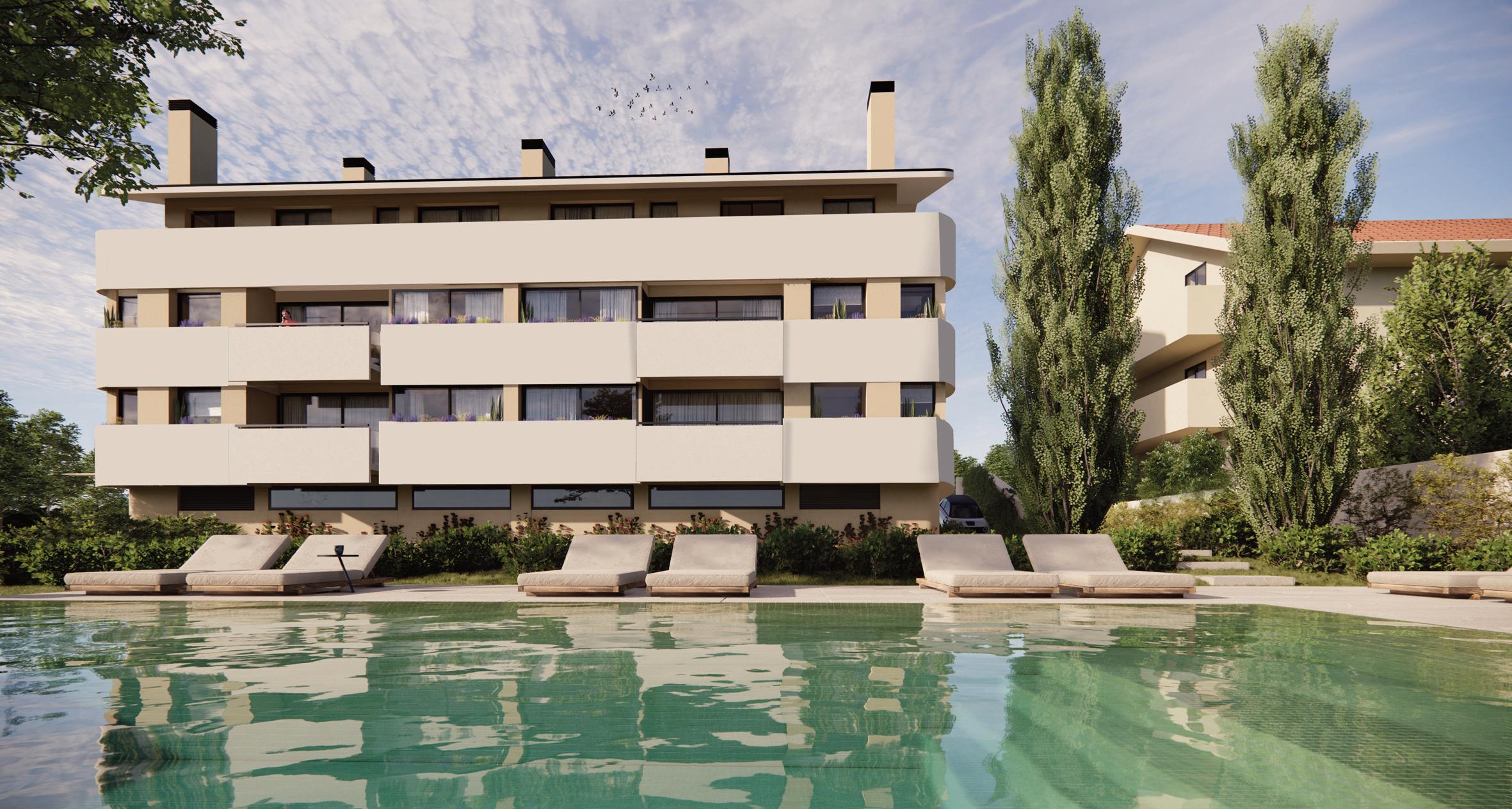 ESSENCE stands out for its contemporary architecture, featuring thoughtfully designed details, and a privileged sun exposure that ensures abundant natural light throughout. Balconies, terraces, and rooftop areas enhance the connection between indoor and outdoor living.