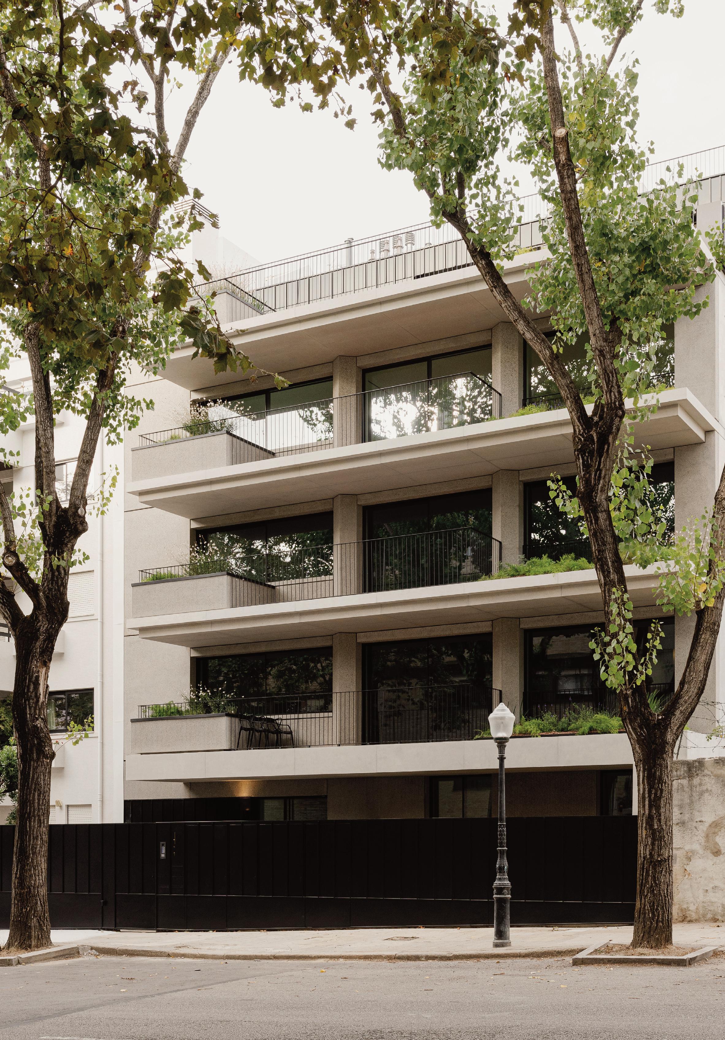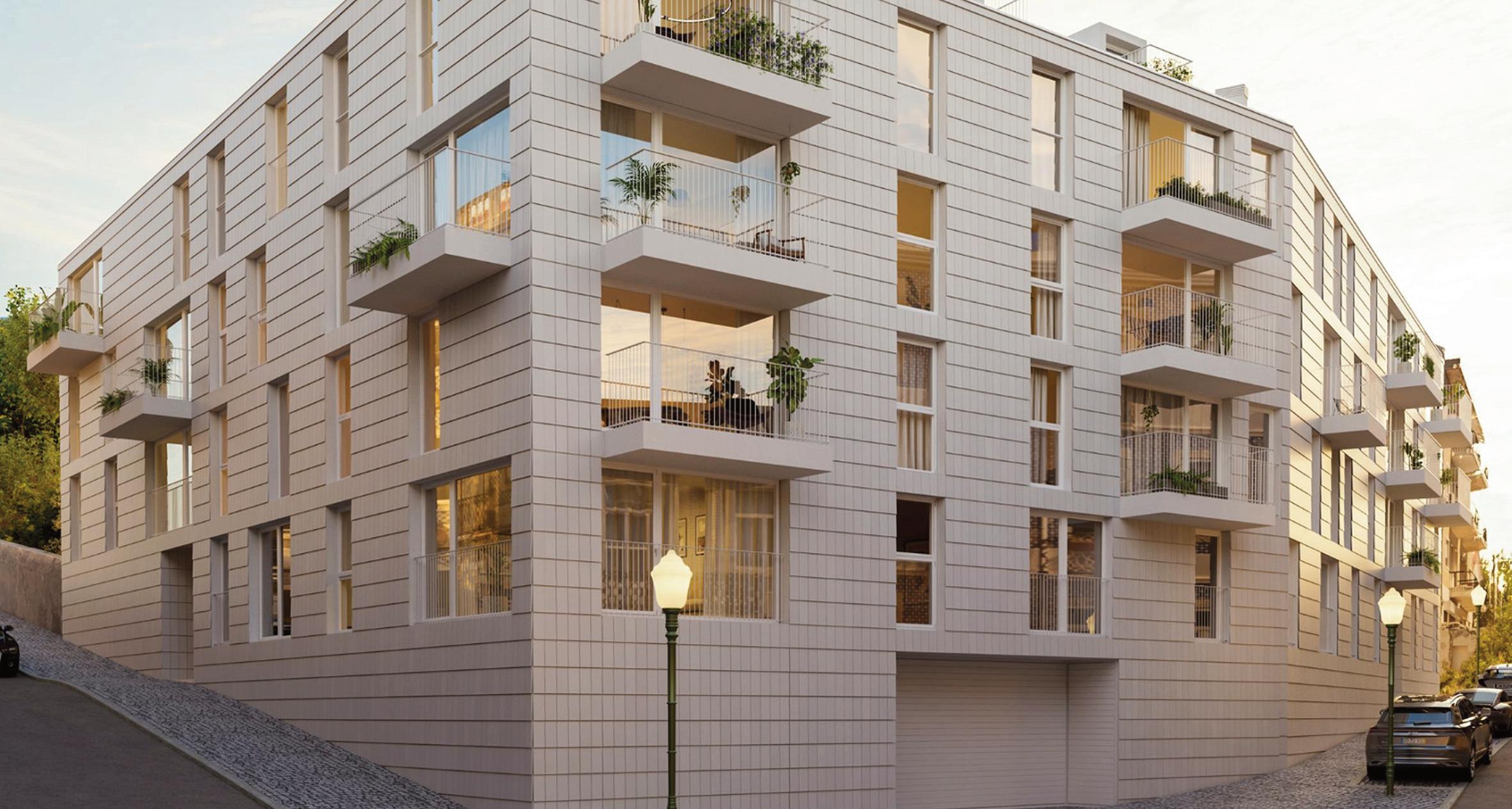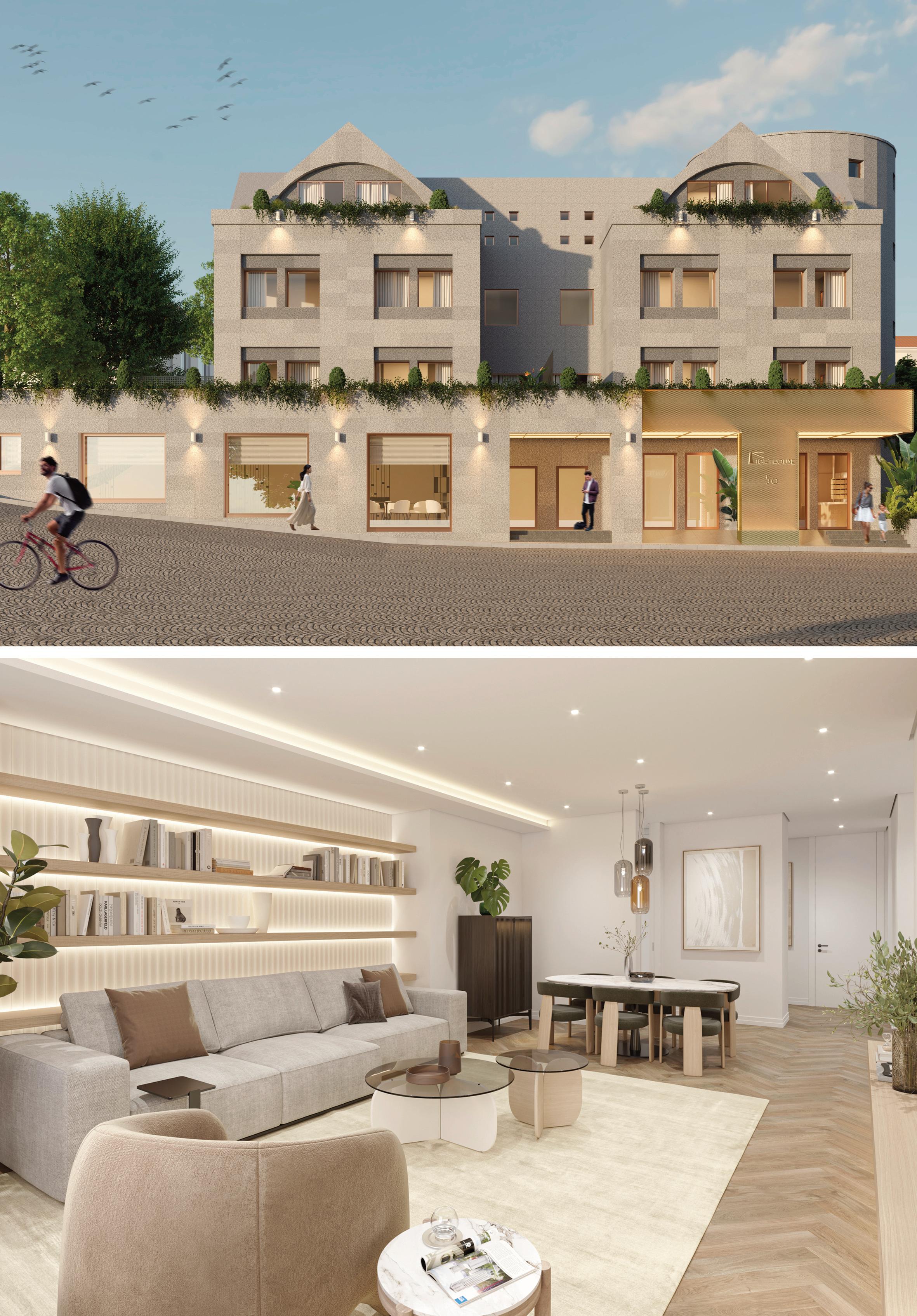 Comprising 24 units, ranging from studio apartments (T0) to seven-bedroom duplexes (T6+1), the building includes underground parking, a gym, a private garden, and five duplex penthouses occupying the top floors, offering an exclusive residential experience.