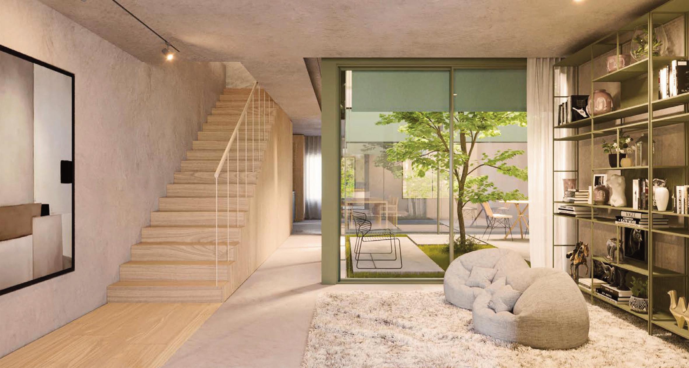 Well-being is central to the project’s concept, reflected in every detail: A fully equipped gym with cutting-edge technology; A multi-purpose room and dedicated spaces for children and teenagers; An outdoor swimming pool; Digital concierge, underground parking, storage units, EV charging stations, and shared green spaces.