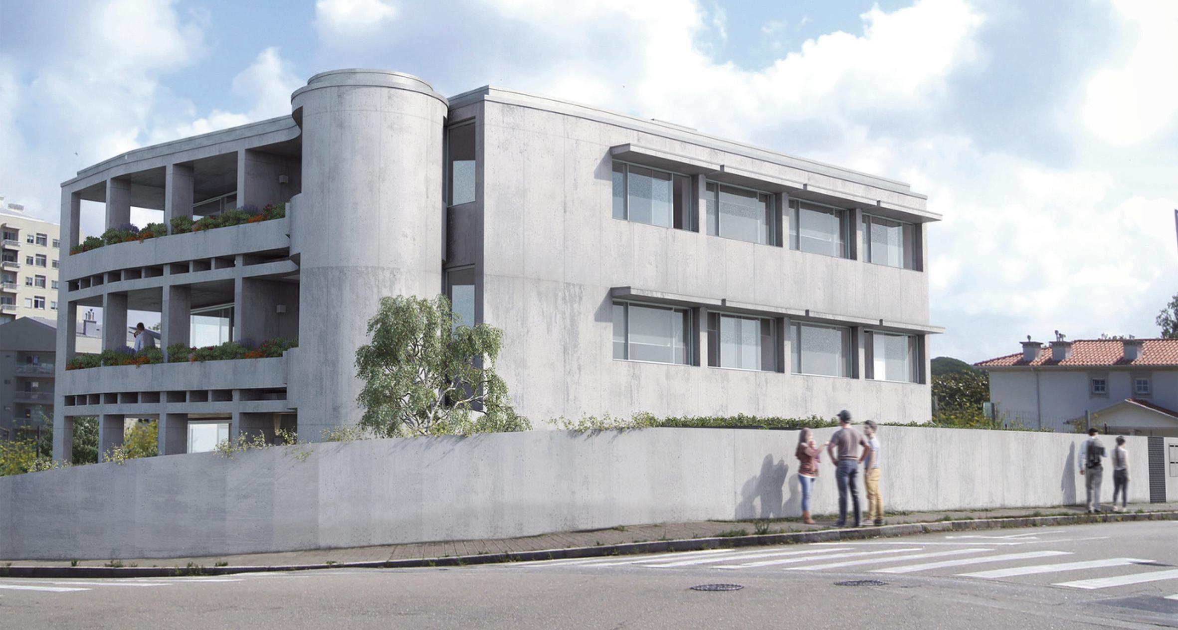 Comprising four studios, one T0+1, and four onebedroom apartments (T1) spread across fi ve floors, the building stands out for its bright balconies and a vertical garden that both inspires and beautifies the space.