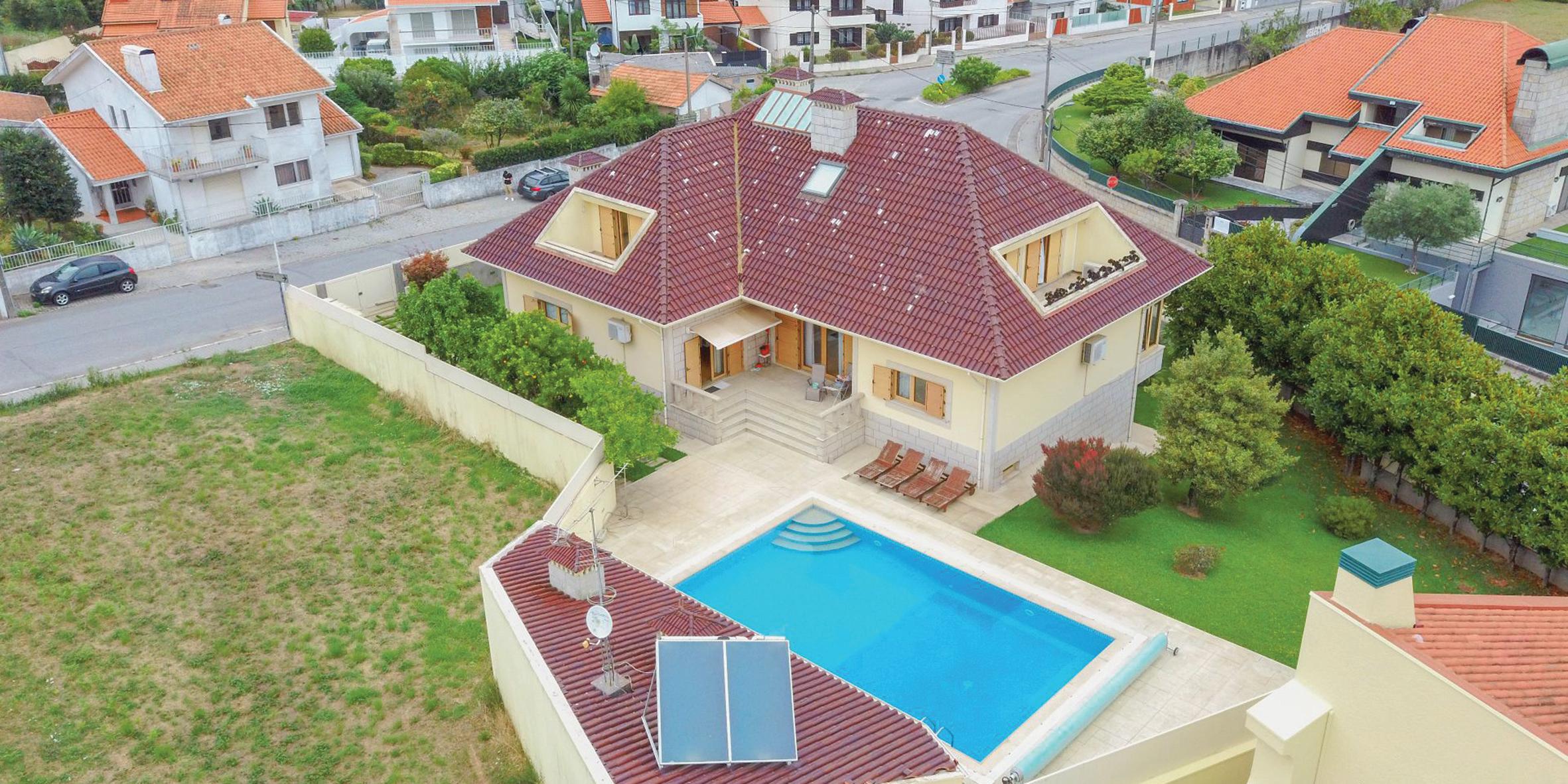 Moradia independente com piscina e jardim ao seu redor em lote de 1.110 m2, Sermonde, Vila Nova de Gaia. Espaço amplos e luminosos, é ideal para quem procura tranquilidade e conforto.