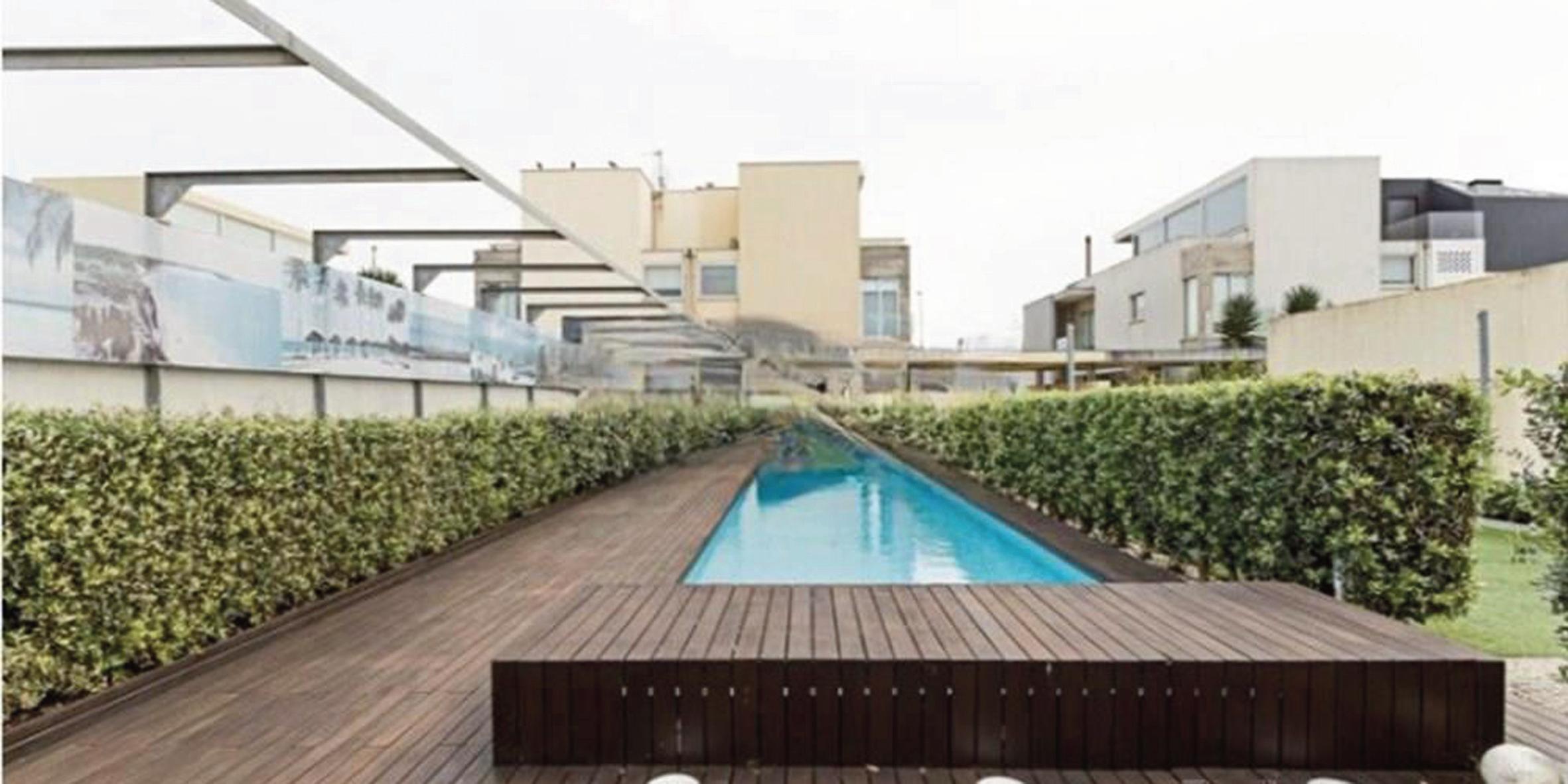 No 1º andar dum prédio de 3 apartamentos, temos este apartamento moderno com piscina privada, e elevador com acesso direto ao hall de entrada do imovel.