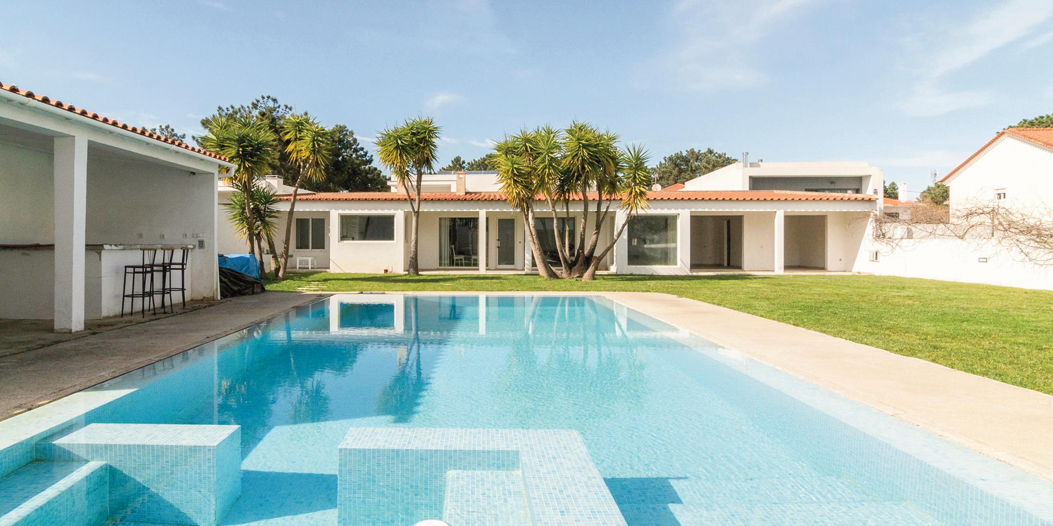 Imóvel em lote com 320m2, com 4 quartos (2 suítes), ampla sala combinada com a cozinha. Piscina, quintal e garagem. Fica na requintada zona de Azeitão.
