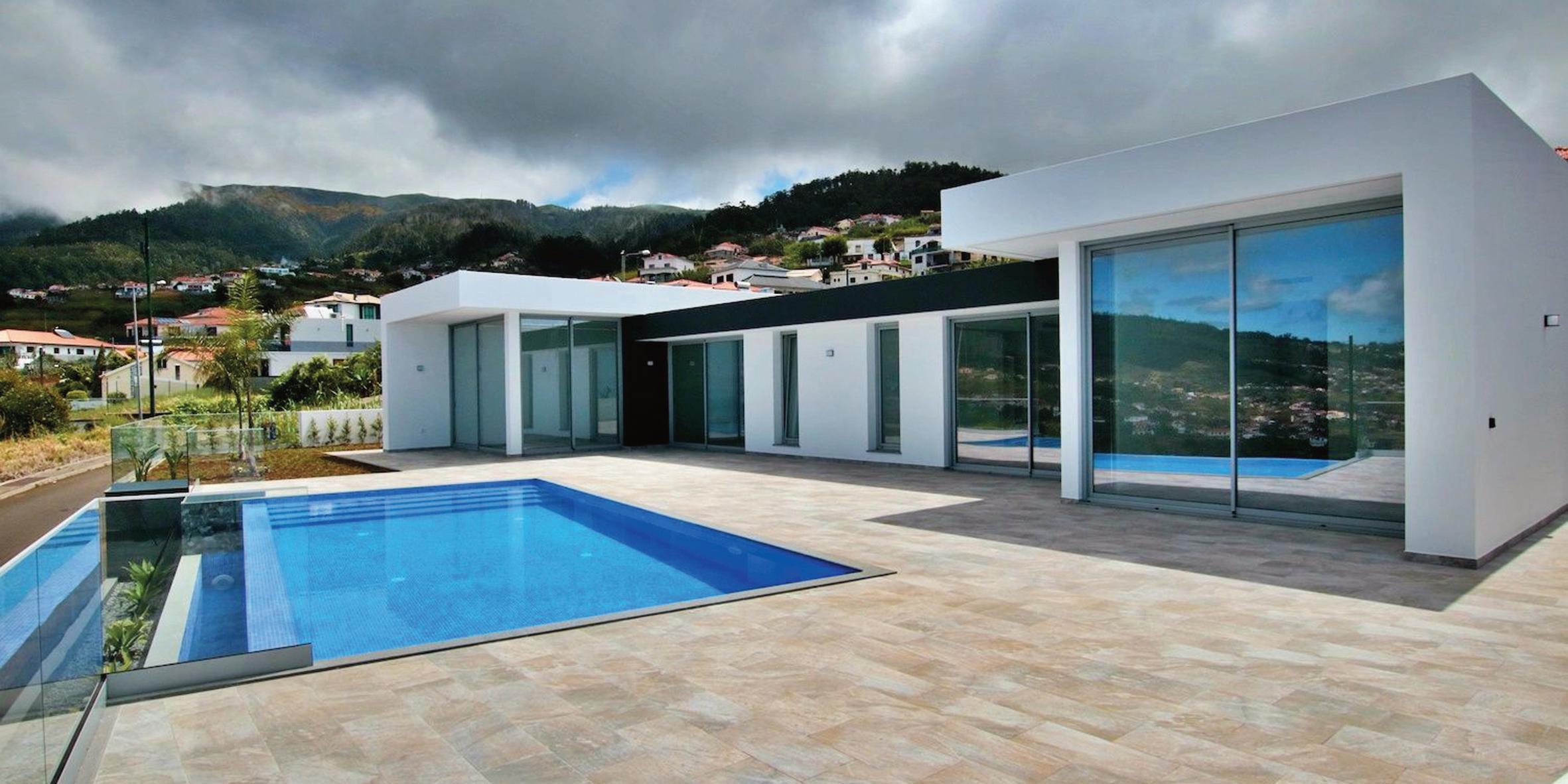 MORADIA FAMILIAR T3 COM PISCINA, VISTA MAR E MONTANHA Esta moradia familiar em construçao dispõe de 3 quartos, um dos quais em suite, 3 casas de banho, cozinha aberta, sala de cinema, elevador.