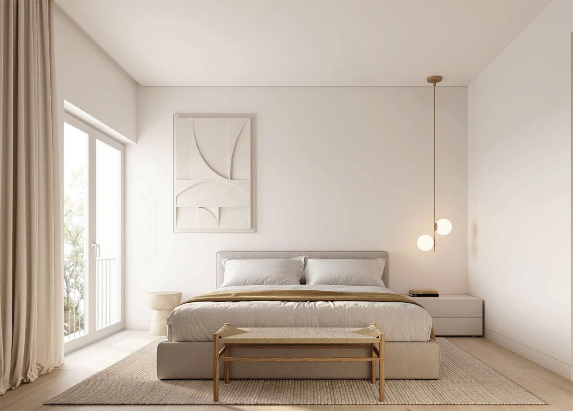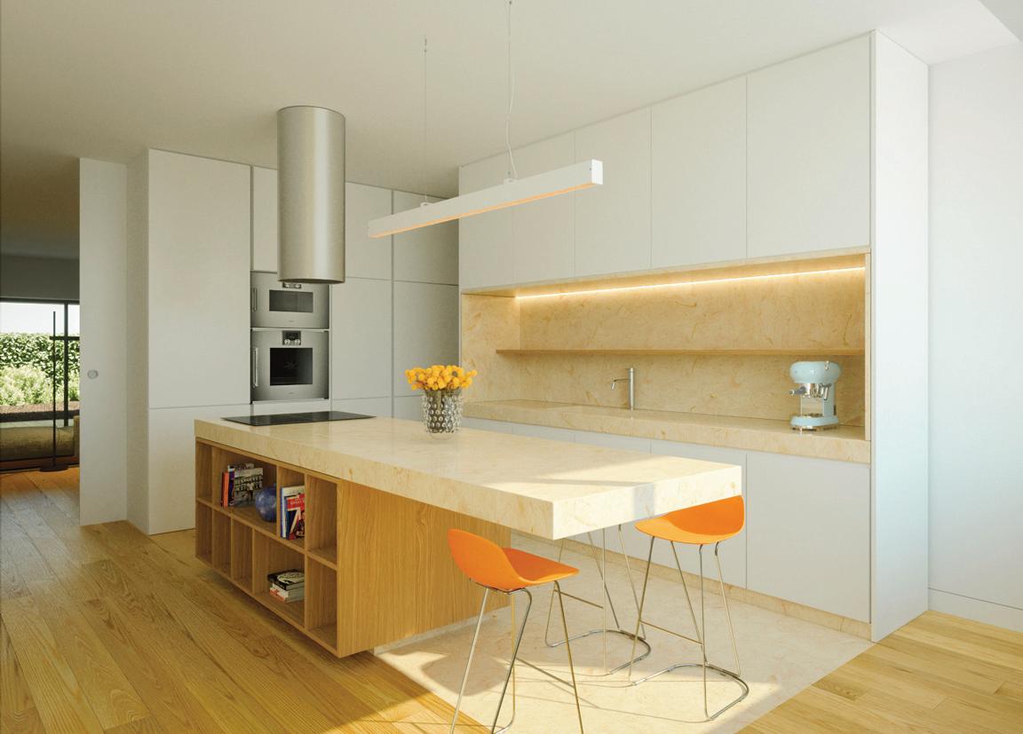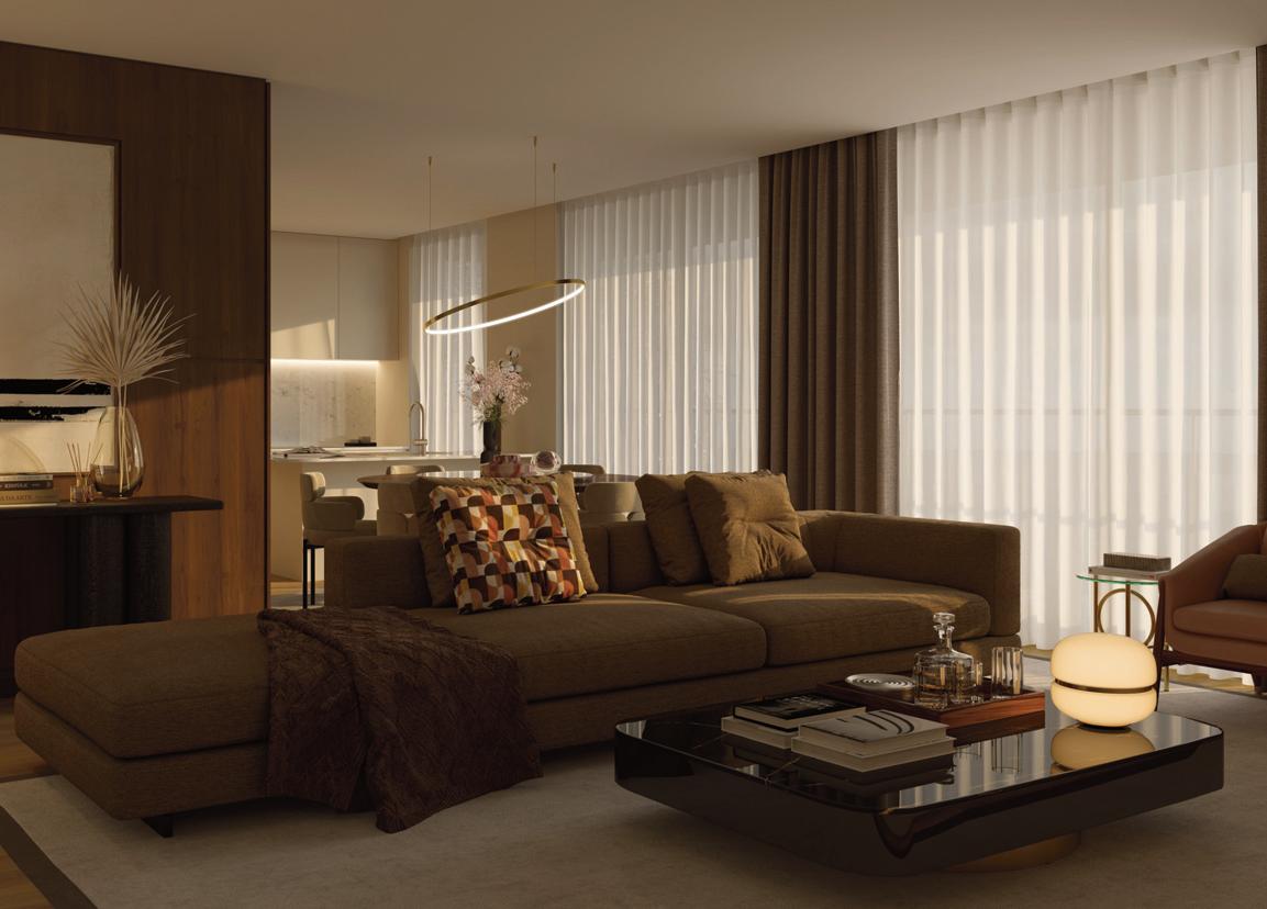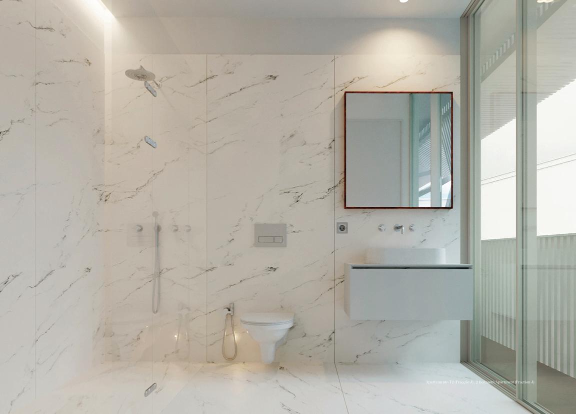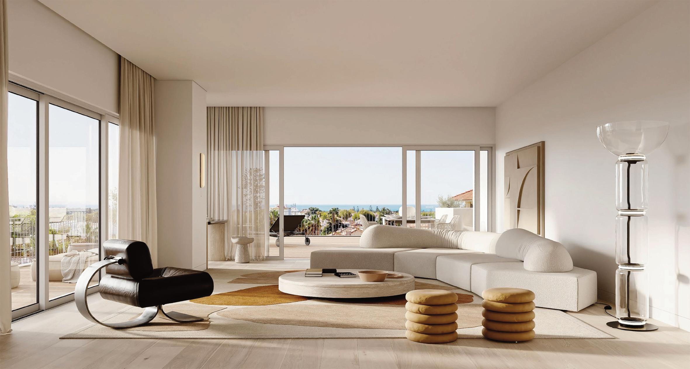 Os apartamentos, com áreas entre 38 m² e 78 m², privilegiam a luz natural e interiores minimalistas, confortáveis e sofisticados, realçados pelo mármore Lioz.
