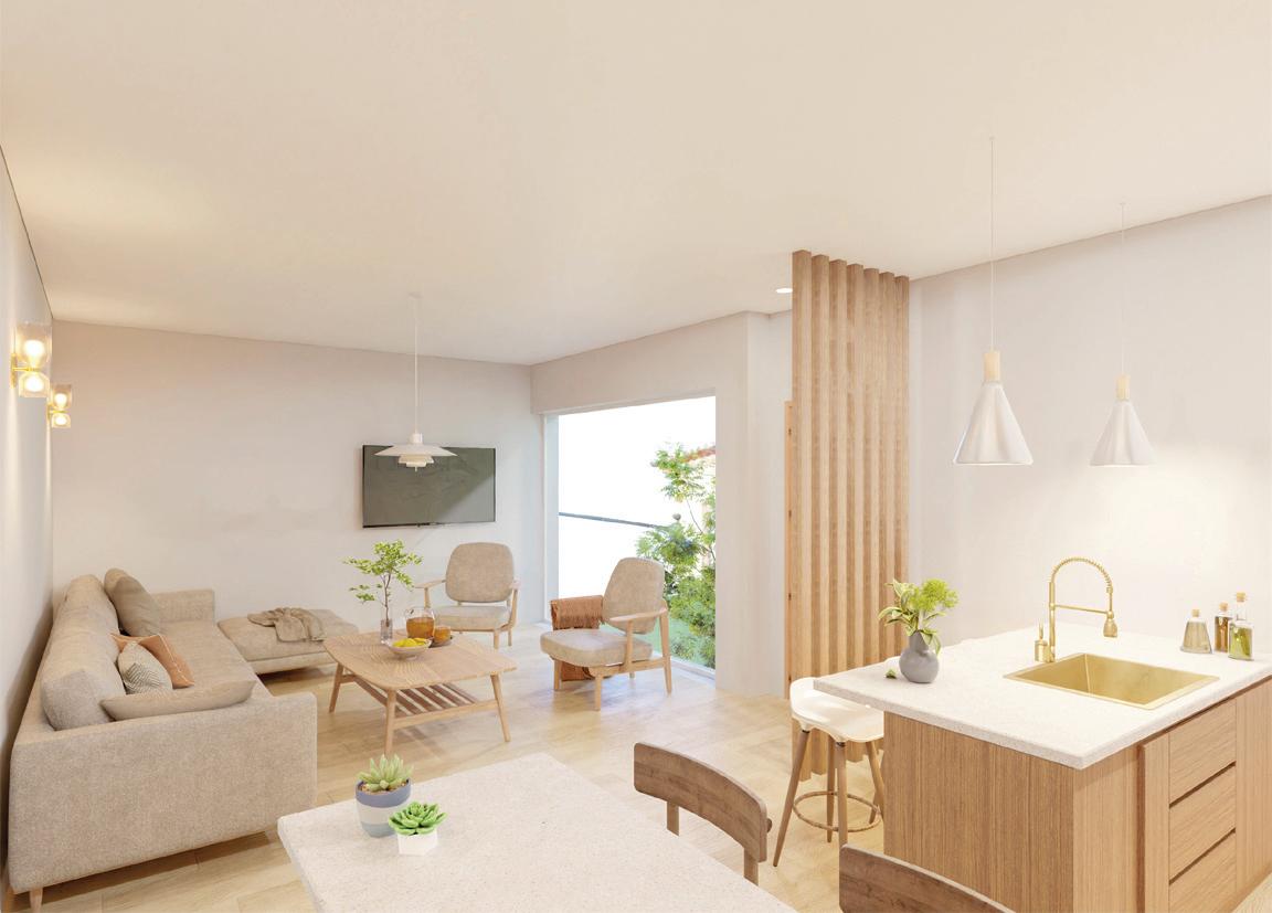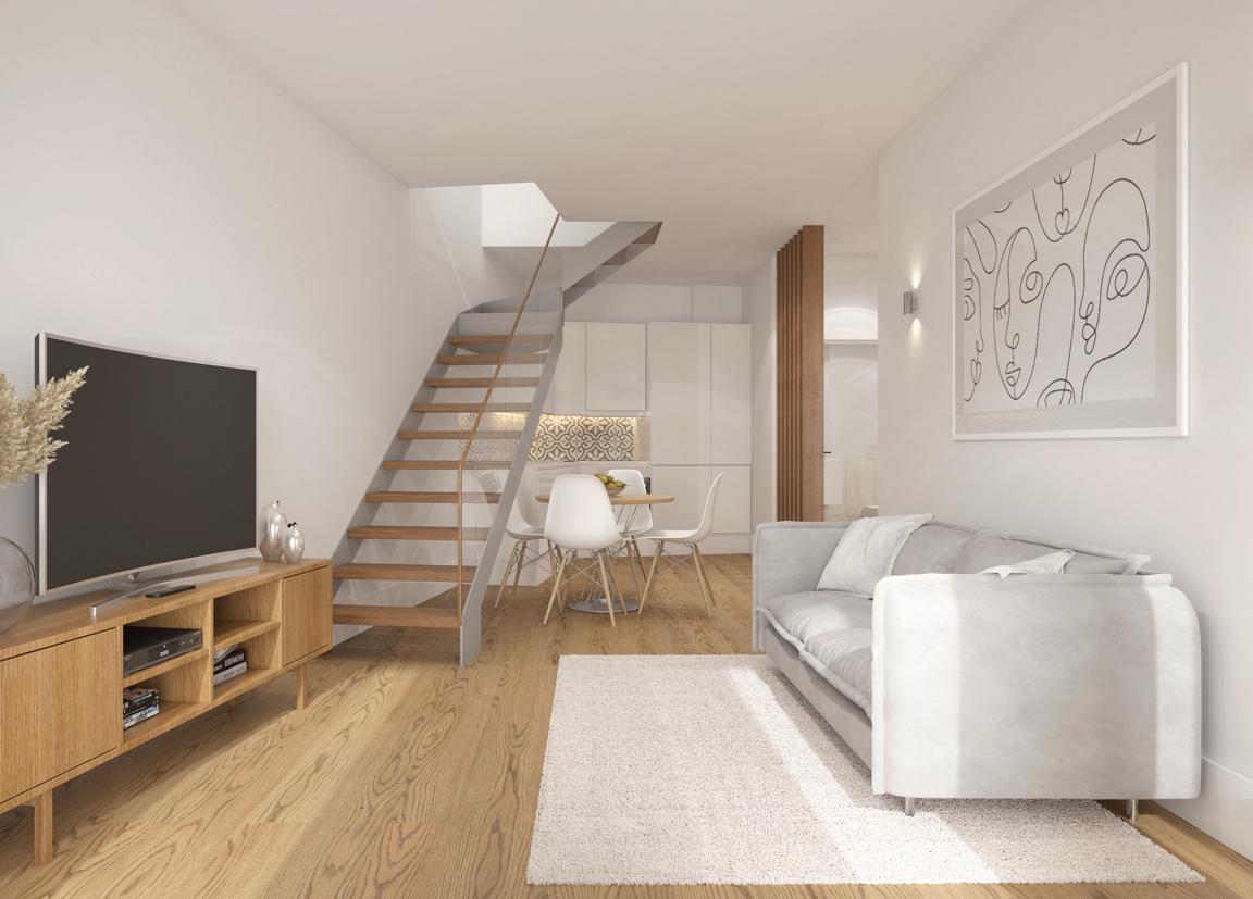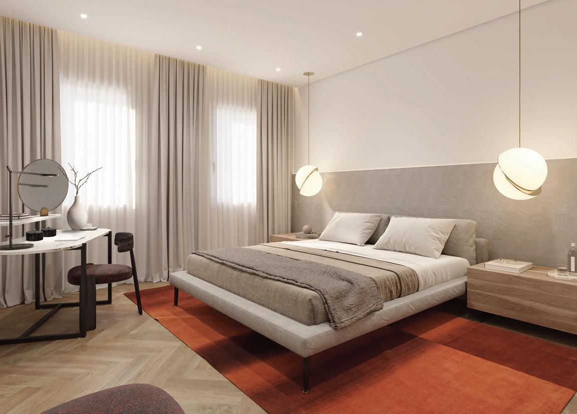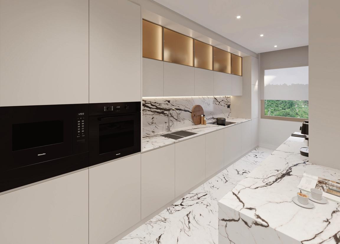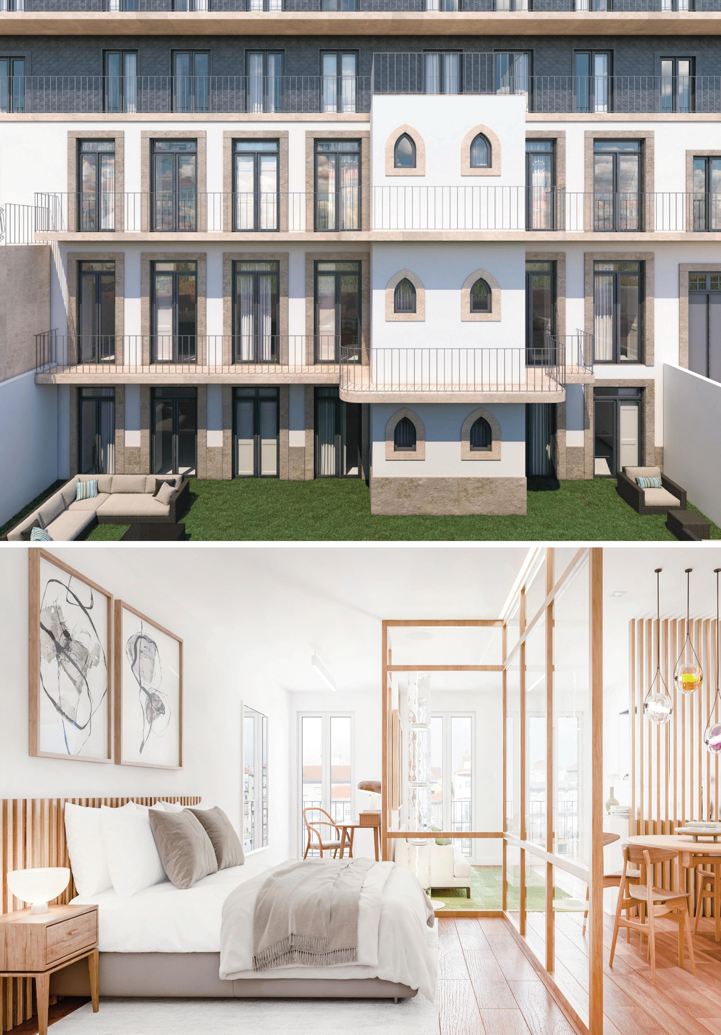 Os apartamentos, com áreas entre 38 m² e 78 m², privilegiam a luz natural e interiores minimalistas, confortáveis e sofisticados, realçados pelo mármore Lioz.