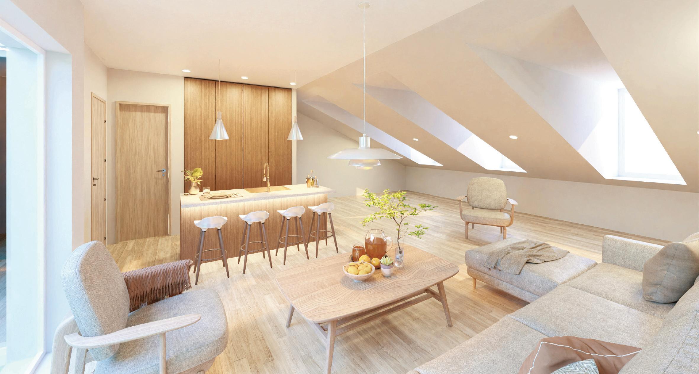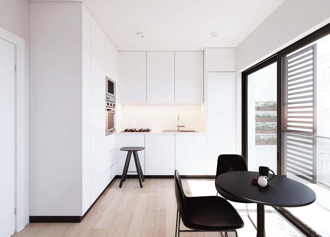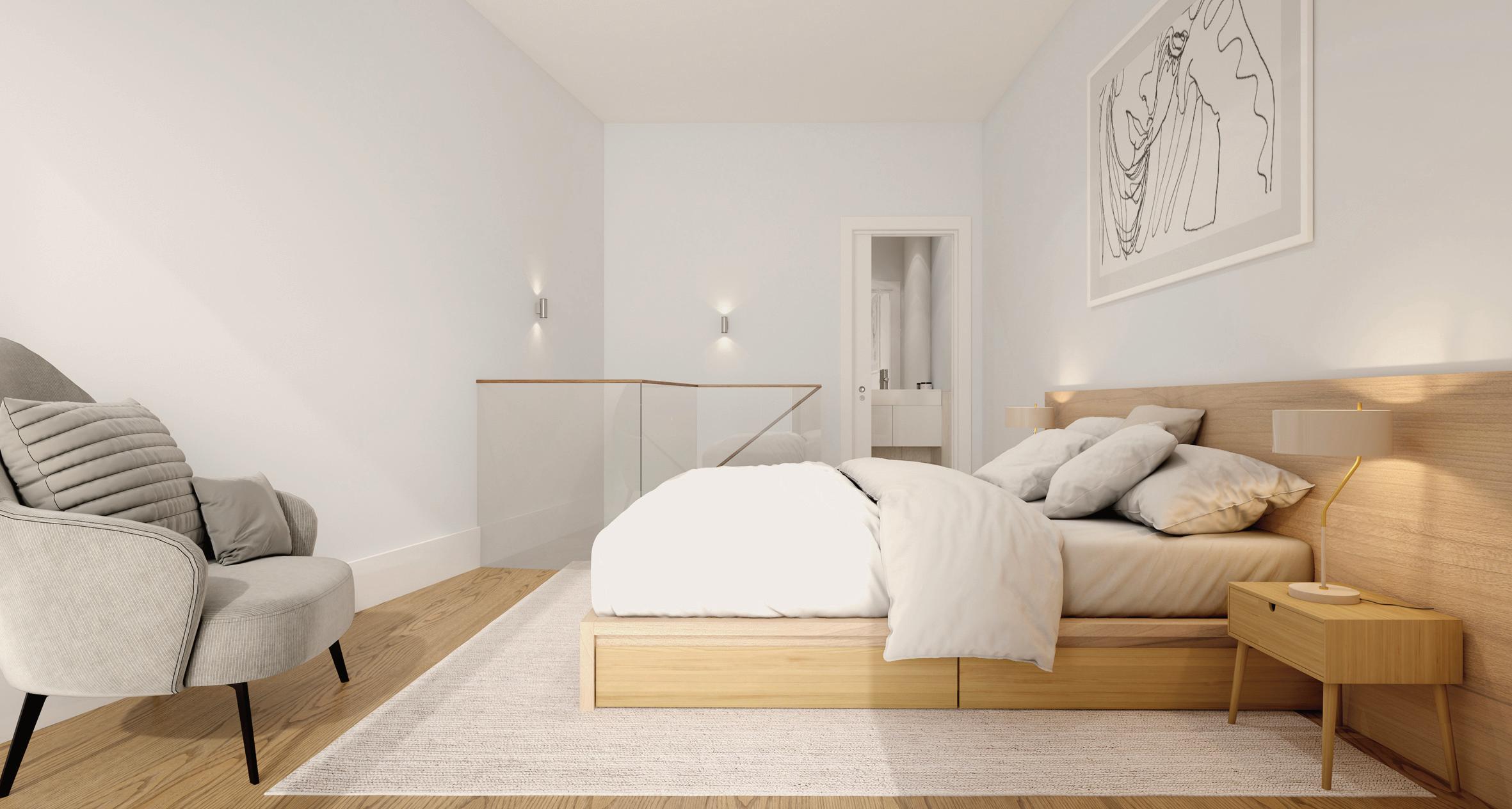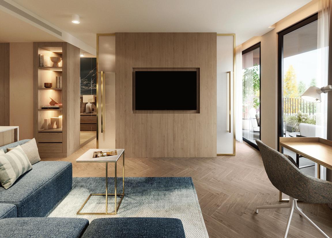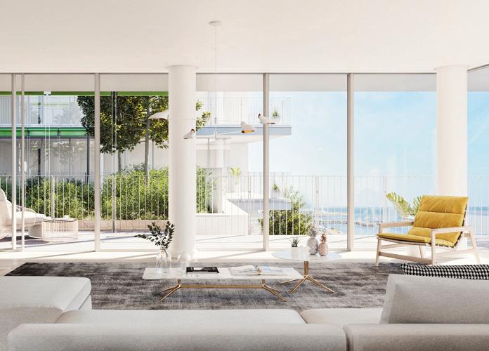 Os apartamentos, com áreas entre 38 m² e 78 m², privilegiam a luz natural e interiores minimalistas, confortáveis e sofisticados, realçados pelo mármore Lioz.