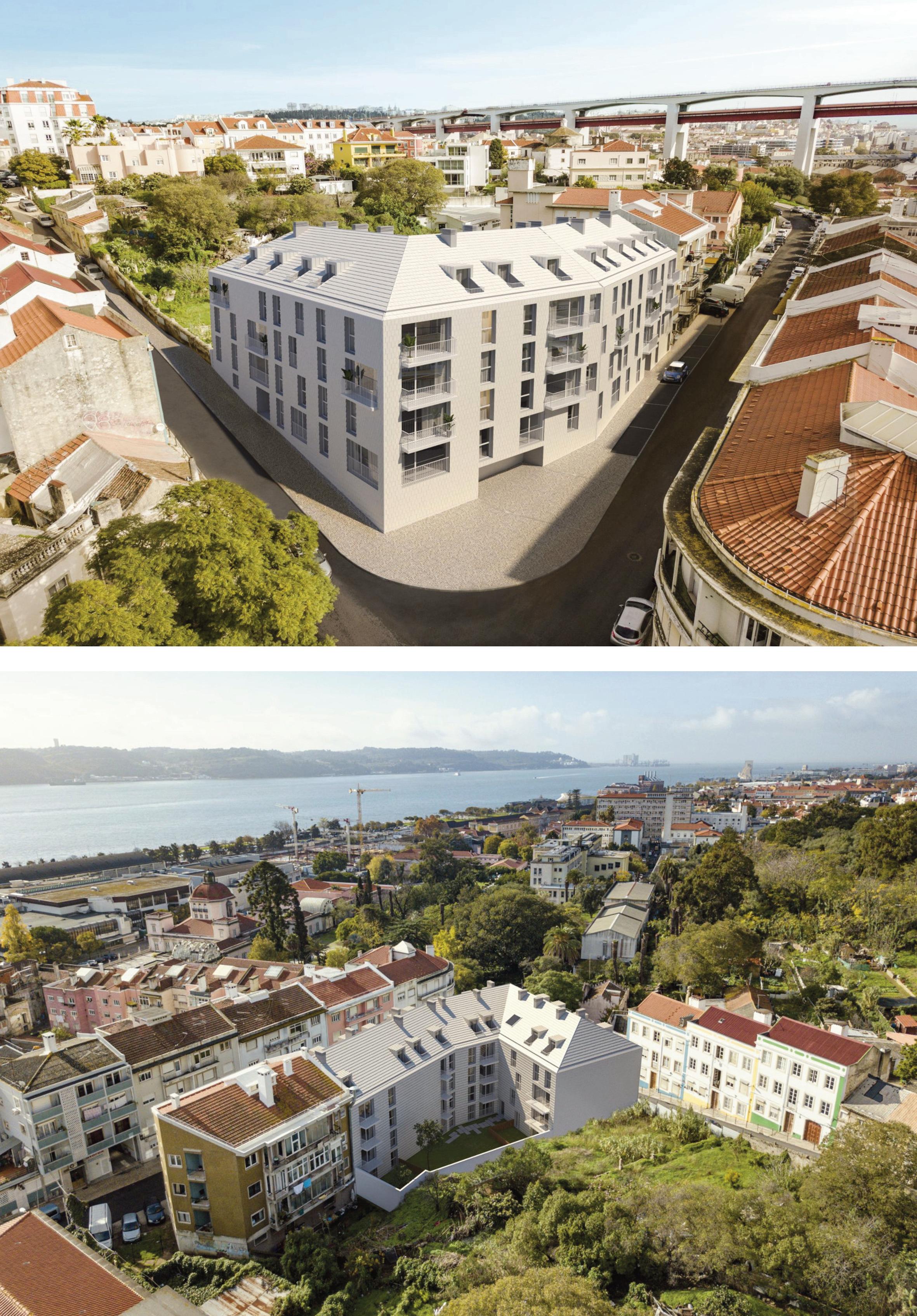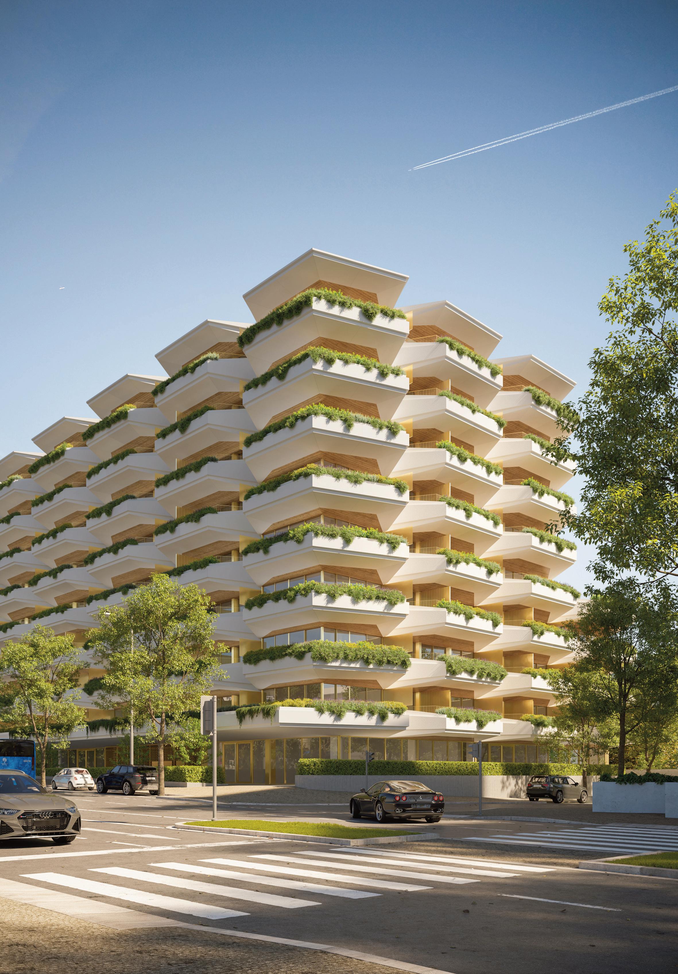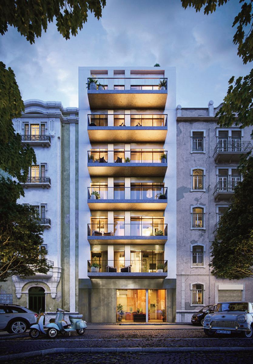 Composto por quatro estúdios, um T0+1 e quatro T1, distribuídos por cinco pisos, destacase pelas varandas luminosas e por um jardim vertical que inspira e embeleza.