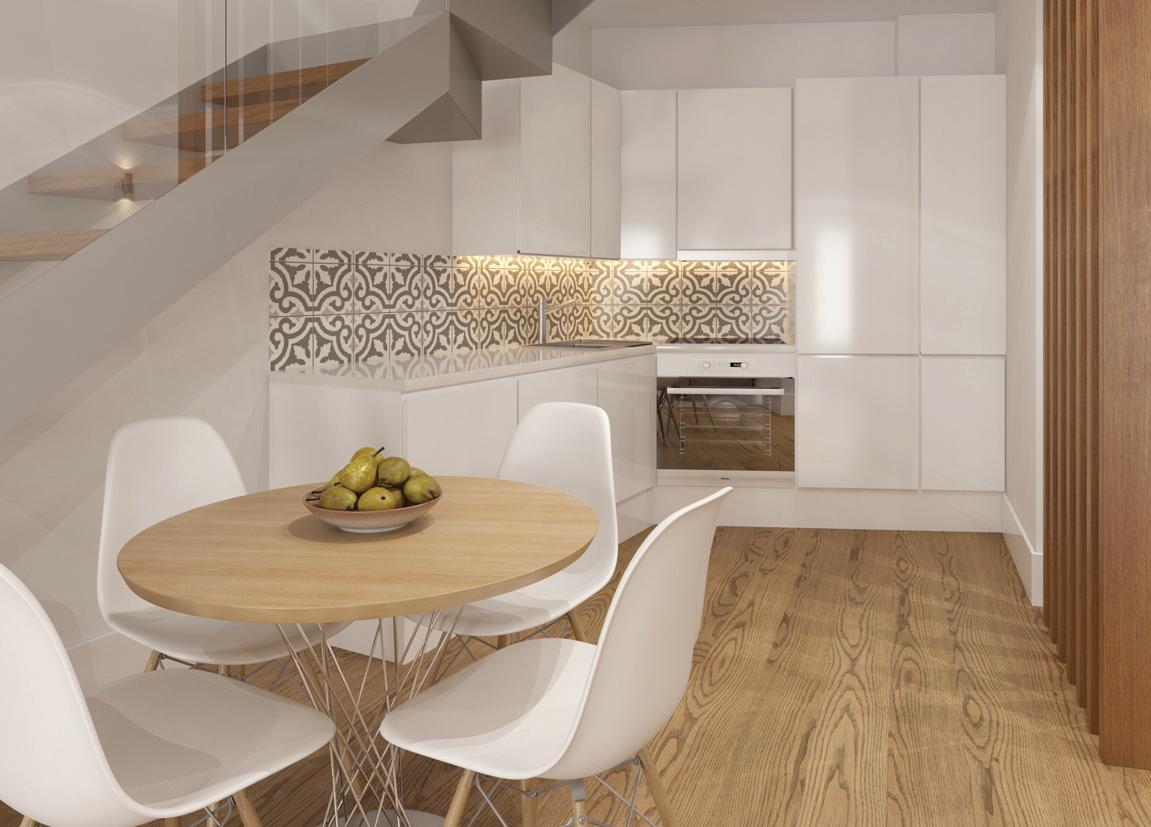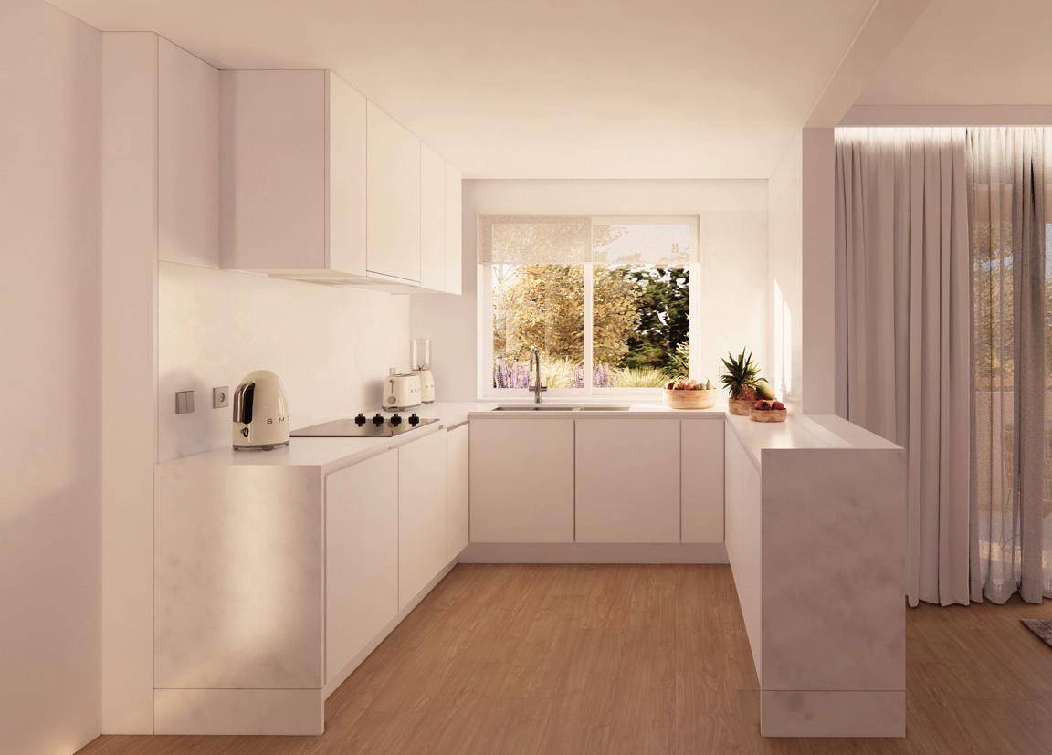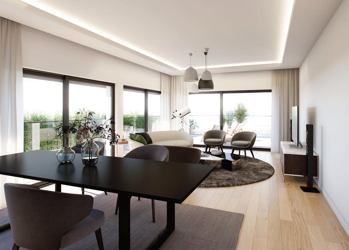 Os apartamentos T1 a T5 combinam modernidade e funcionalidade. Cada detalhe foi projetado para facilitar a vida, com acabamentos de alta qualidade. As amplas varandas permitem luz natural, criando ambientes confortáveis e vistas impressionantes. As moradias duplex funcionam como uma pequena casa no centro da cidade. São envolvidas pelos jardins e por um pátio interior, que proporciona um incremento de luz em toda a casa.