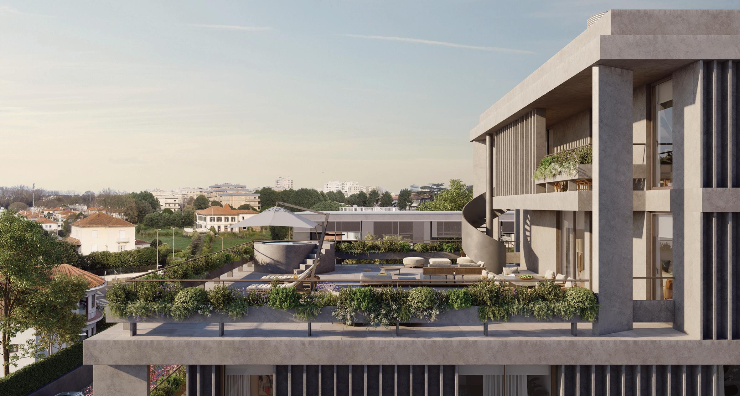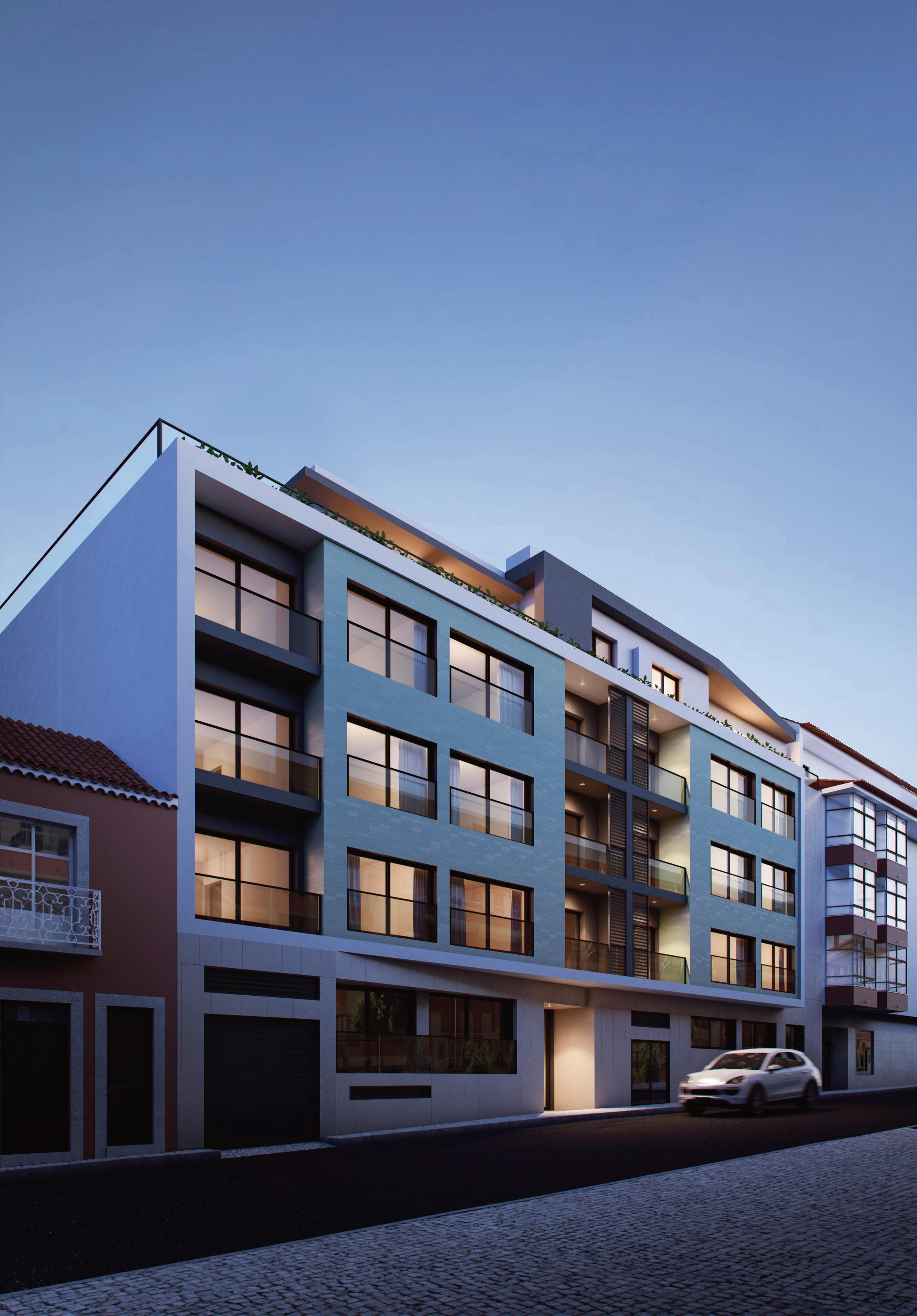 Composto por 24 frações, de T0 a T6+1, o edifício inclui estacionamento subterrâneo, ginásio, jardim privativo e cinco penthouses duplex que correm os últimos pisos, oferecendo uma experiência residencial exclusiva.