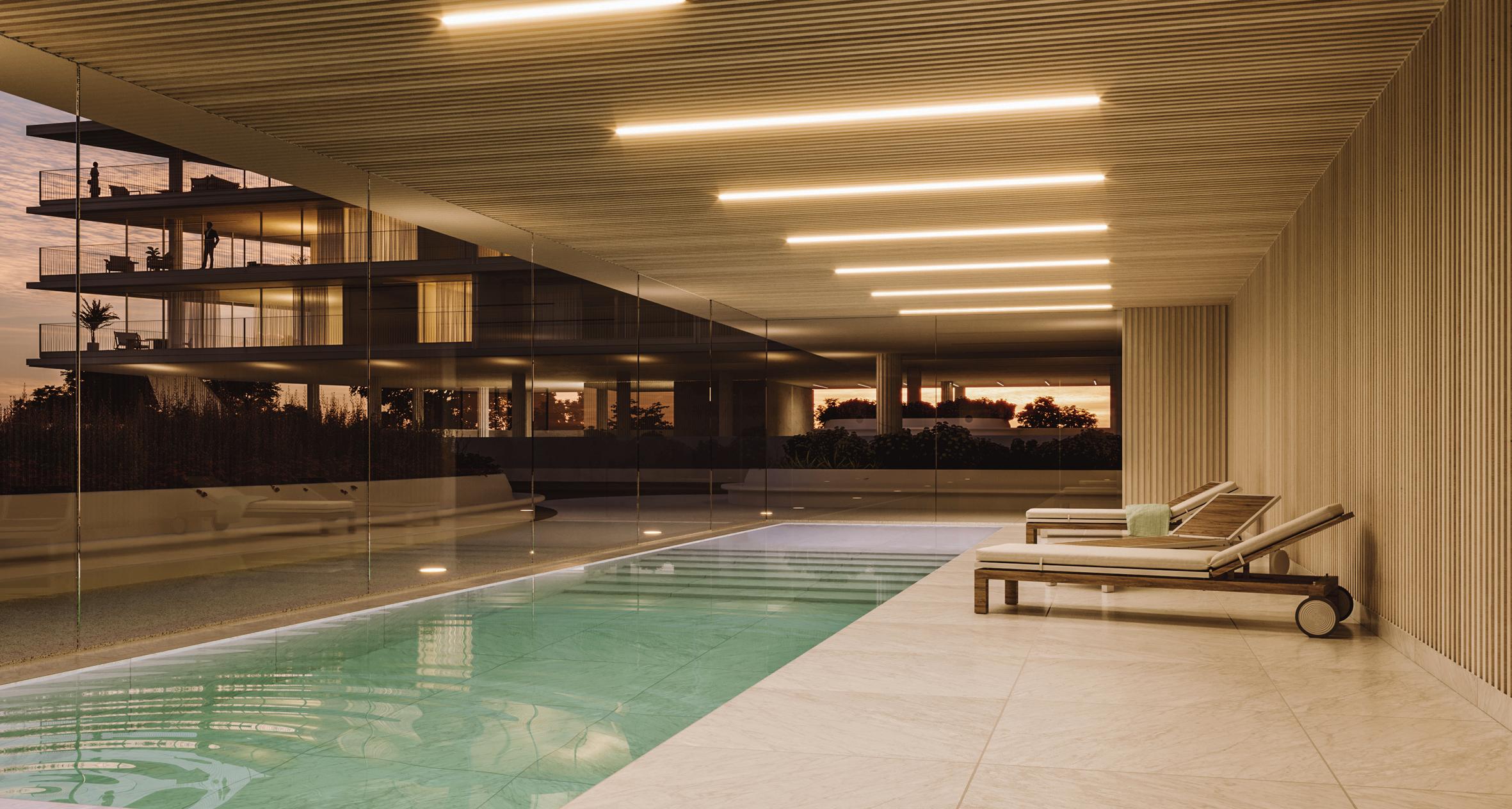 O conceito de bem-estar está presente em cada detalhe: ginásio equipado com tecnologia de topo; sala multiusos e salas dedicadas a crianças e adolescentes; piscina exterior, digital concierge, estacionamento em garagem, arrumos, carregamento para veículos elétricos e zonas verdes partilhadas.