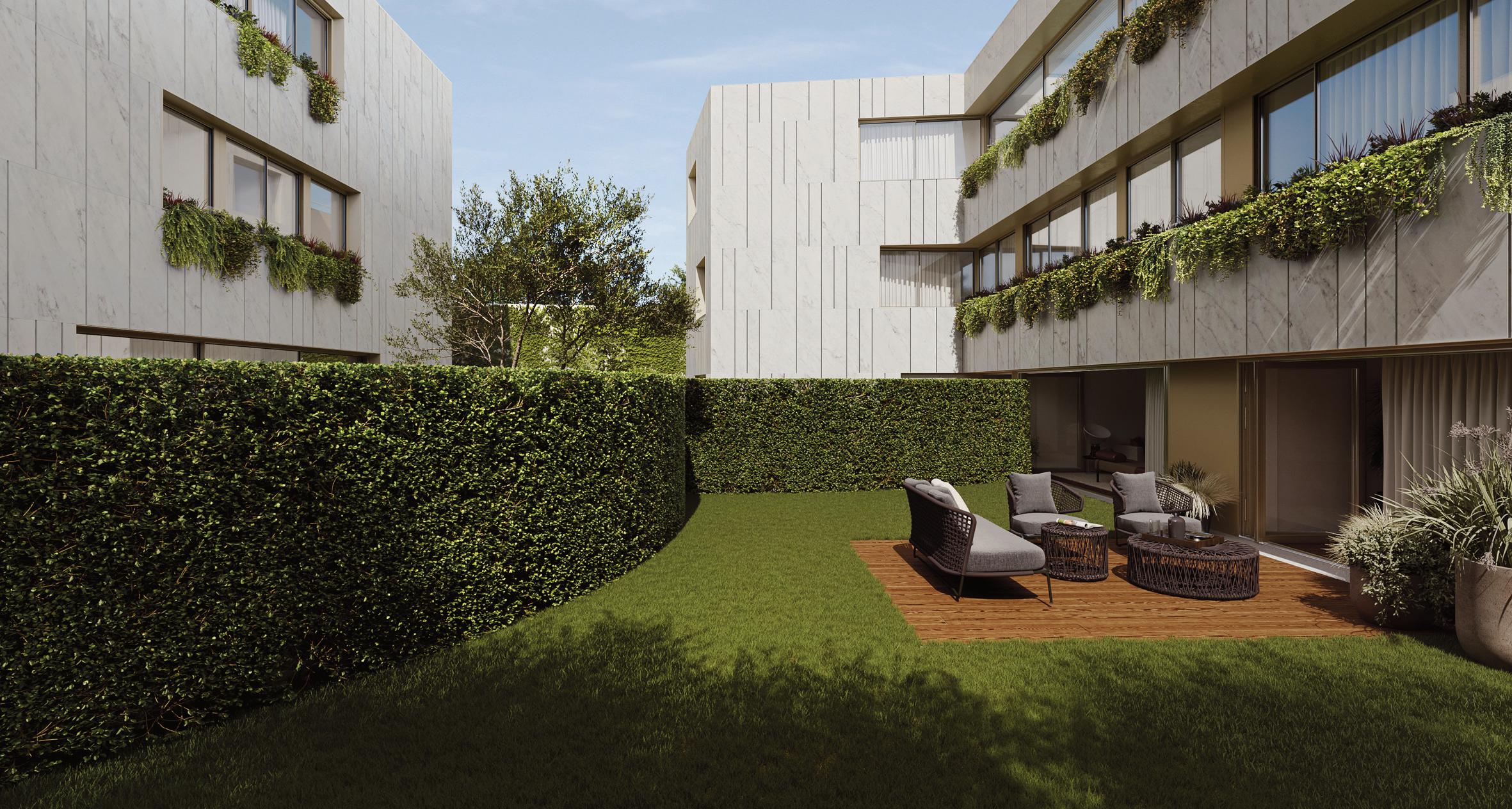 Um projeto que alia modernidade, lazer e qualidade de vida em cada detalhe, com piscina e um vasto conjunto de espaços verdes para fruição exclusiva dos moradores.