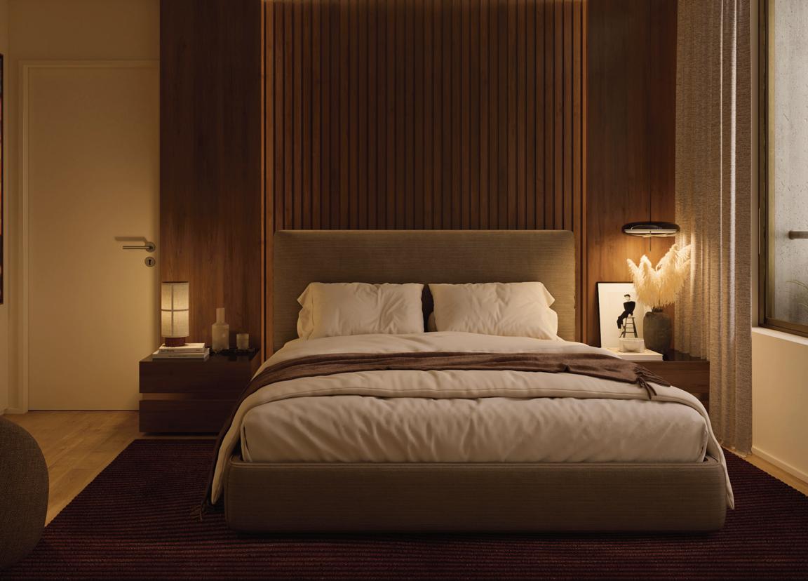Com apenas 12 apartamentos distribuídos por três pisos, nas tipologias T1 e T2, privilegia a exclusividade e a tranquilidade. As unidades dispõem de varandas amplas e vistas desafogadas, que prolongam os ambientes interiores e os abrem para a cidade. Pensado para o estilo de vida contemporâneo, o condomínio oferece garagem privativa, estacionamento com pontos de carregamento para viaturas elétricas e espaço para bicicletas.