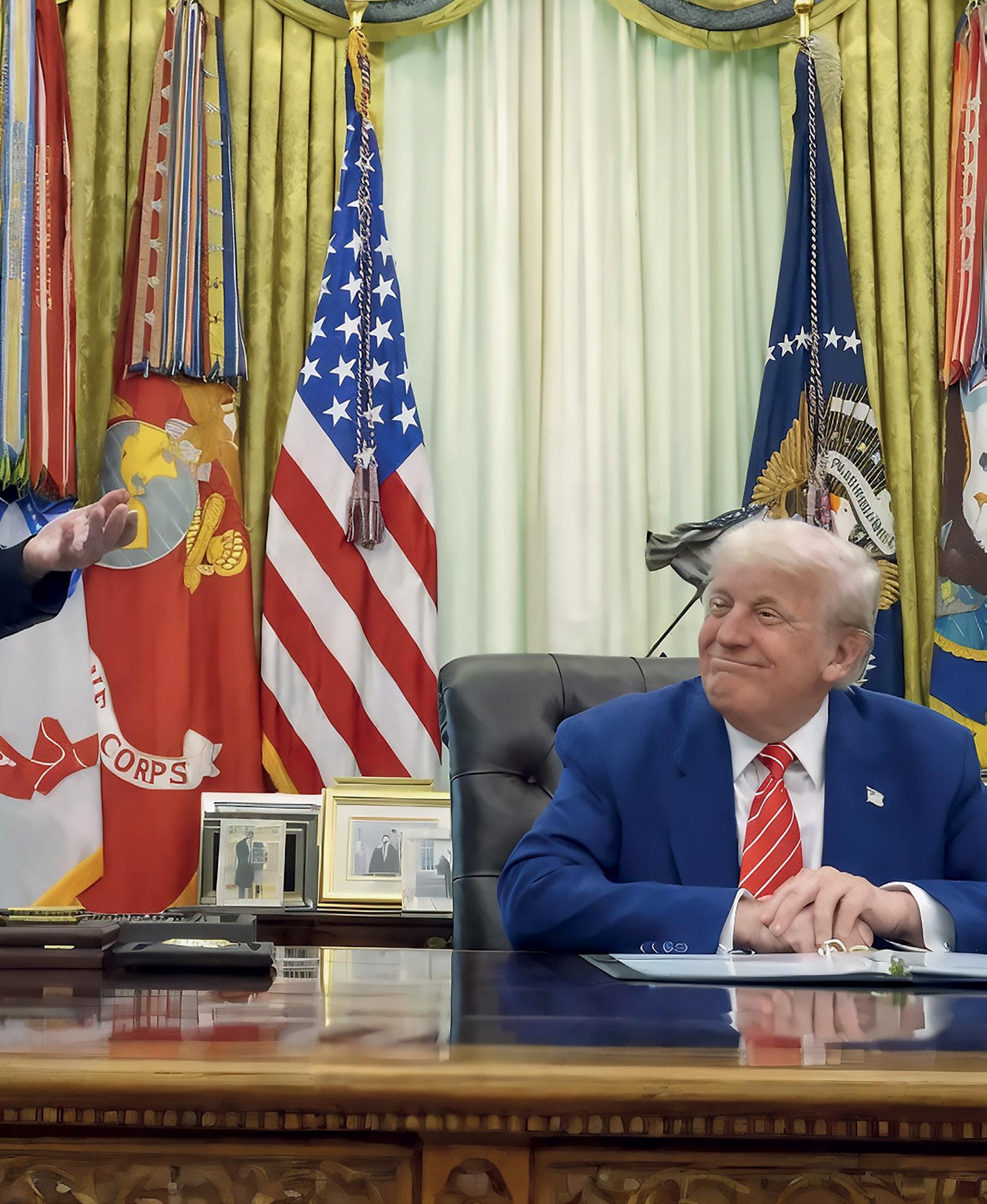 Nuestro encuentro se llevó a cabo una mañana de junio, en su oficina del periódico Contraréplica, ubicada al poniente de la capital potosina, la cual semeja un santuario del nacionalismo: En la entrada, sobre un pedestal de marmol, está esculpido el libro de la Constitución mexicana. Enfrente, un busto de bronce de Benito Juárez, uno de sus personajes favoritos. Una enorme águila de hierro nos recibe al subir las escaleras y a un lado de su escritorio resalta una vitrina con figuras diminutas de todos los presidentes que ha tenido nuestro país, desde Guadalupe Victoria hasta Claudia Sheinbaum. La bandera de México yace a un lado, así como el escudo nacional, entre otros símbolos patrios y libros de historia.