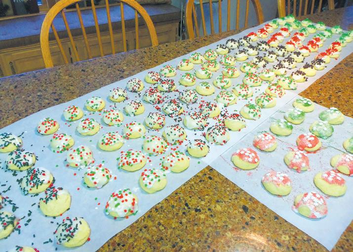 • Make icing with 1 lb confectioners sugar and 2 tsp Anise with some added water to get a good consistency. When cookies are cooled, dip and sprinkle with jimmies!