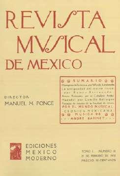 dad musicológica, es a Ponce, quien tras dirigir la Revista Musical de México se sumó a la revista México Moderno que editaba Enrique González Martínez a principios de los años veinte. Posteriormente, durante su estancia en París, Ponce editó Gaceta Musical, que se distribuía en México, y así podríamos seguir hablando de muchas publicaciones que, si existieron con mayor o menor éxito, fue porque había un público que las consumía y, no solo eso, hasta llegaron a ser comercialmente viables, como Carnet Musical, que durante su primera época –que abarcó de 1945 a 1966– llegó a lucrar muy bien con los espacios que destinaba para sus anunciantes sin hacer a un lado su propósito de divulgar la cultura musical.