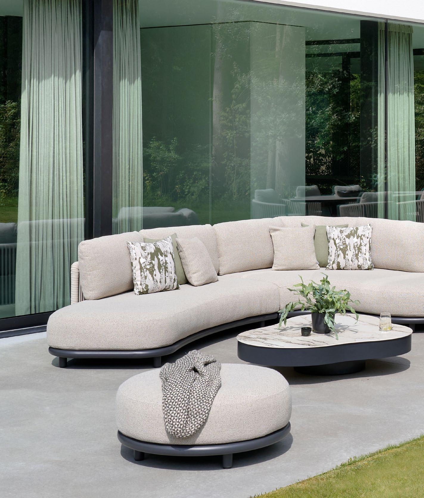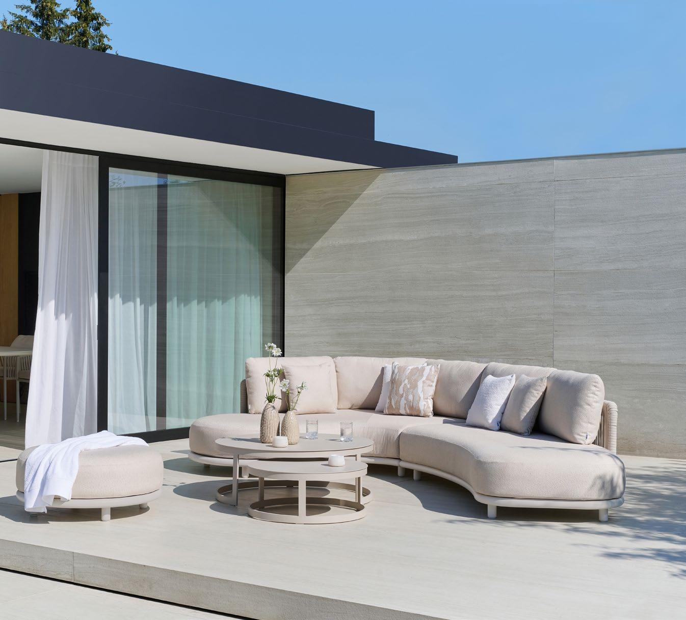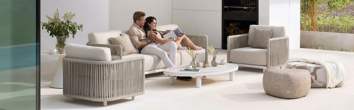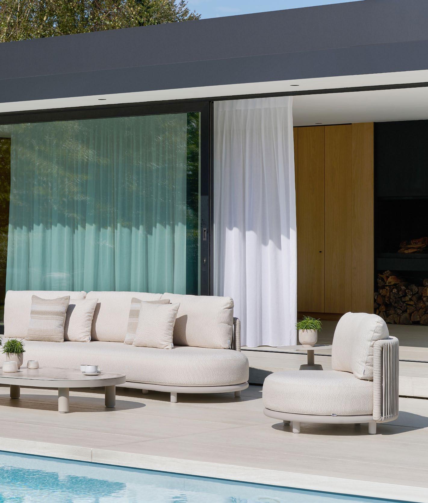 Laat je inspireren door Lomano en mix en match de mooiste materialen en stoffen. Combineer roestvrij aluminium met weerbestendige beige rope en selecteer de zachtste stoffen uit onze All Weather-collecties. Op maat van jouw buitengenot.