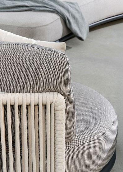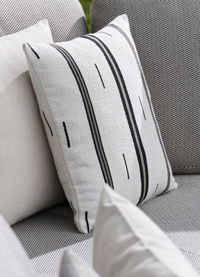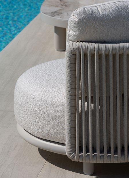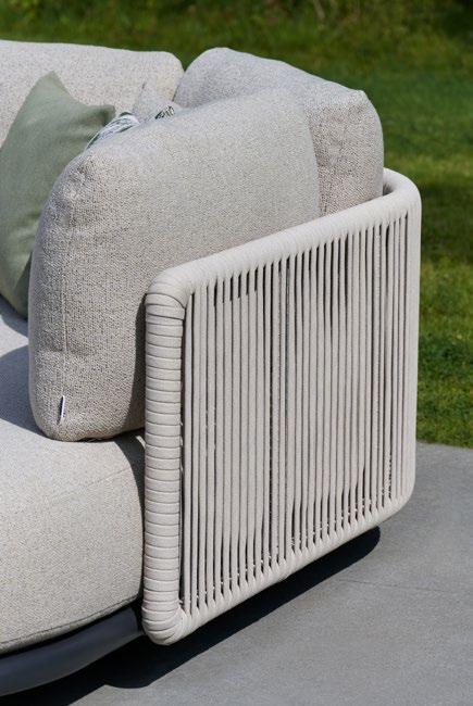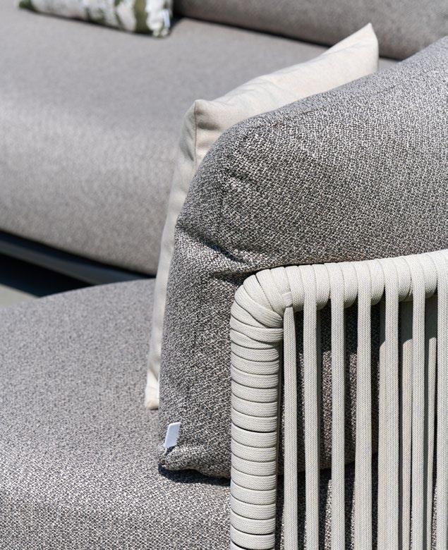 Combineerbaar met All Weather kussens - zie p. 60-63 Éléments pour salon de jardin en aluminium noir ou beige et corde luxe plate tissée verticalement beige À combiner avec des coussins All Weather - voir p. 60-63