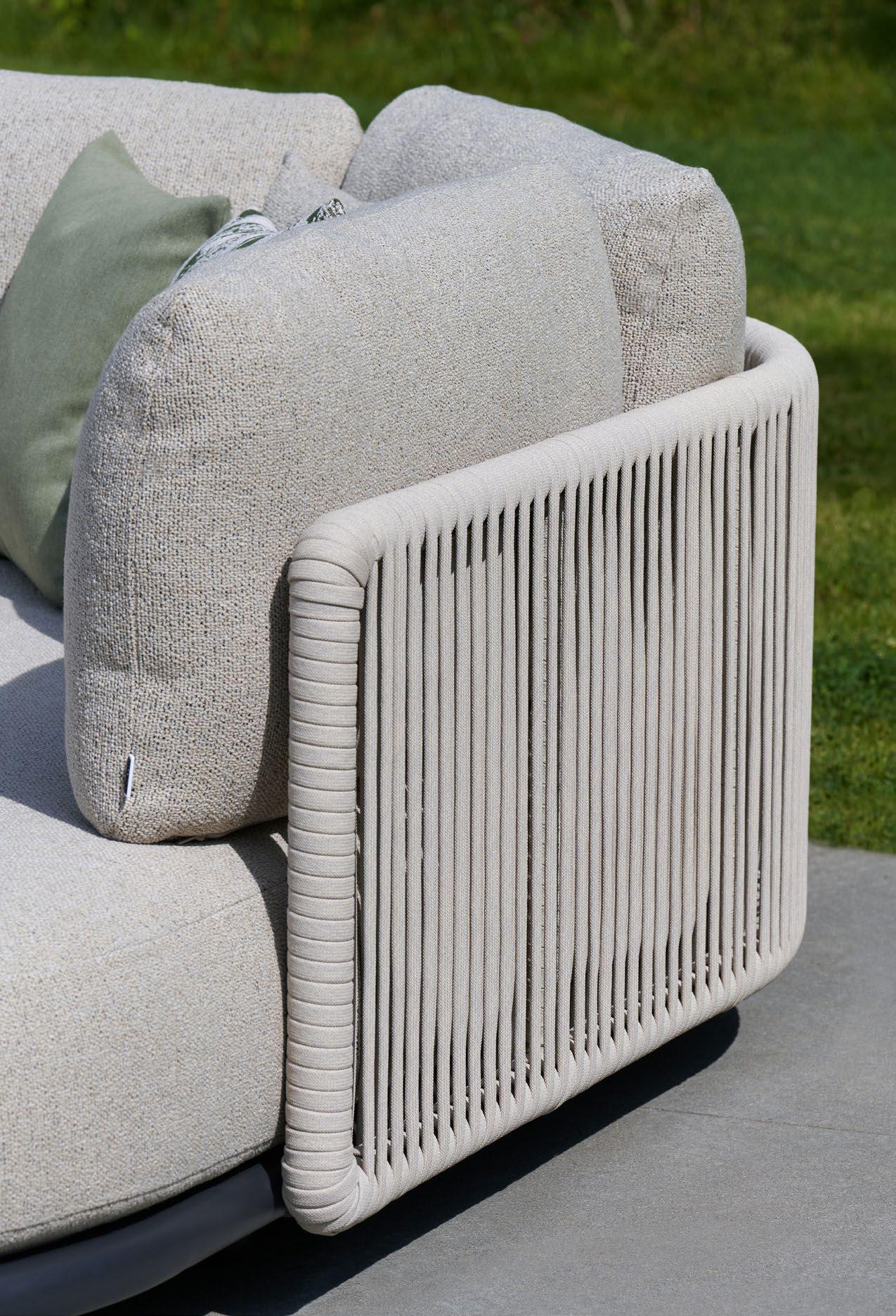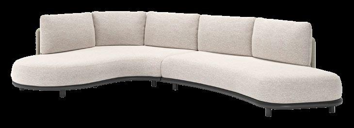 Combineerbaar met All Weather kussens - zie p. 60-63 Éléments pour salon de jardin d'angle en aluminium noir ou beige et corde luxe plate tissée verticalement beige À combiner avec des coussins All Weather - voir p. 60-63
