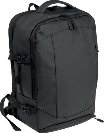 Backpack with padded 14” laptop compartment and 10” tablet pocket, comfort-fit shoulder straps, padded grab handle, Quick Pocket for easy access to items you need most frequently, essentials organizer, zippered side pocket, front zippered pocket, Pass-Thru trolley sleeve which slides over the handle of wheeled luggage. Capacity 17 / 24 L.