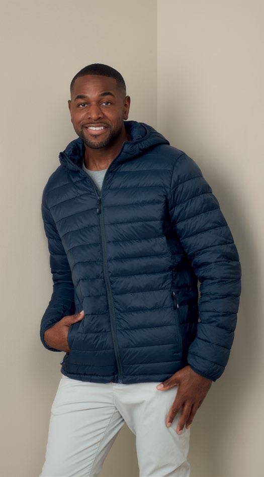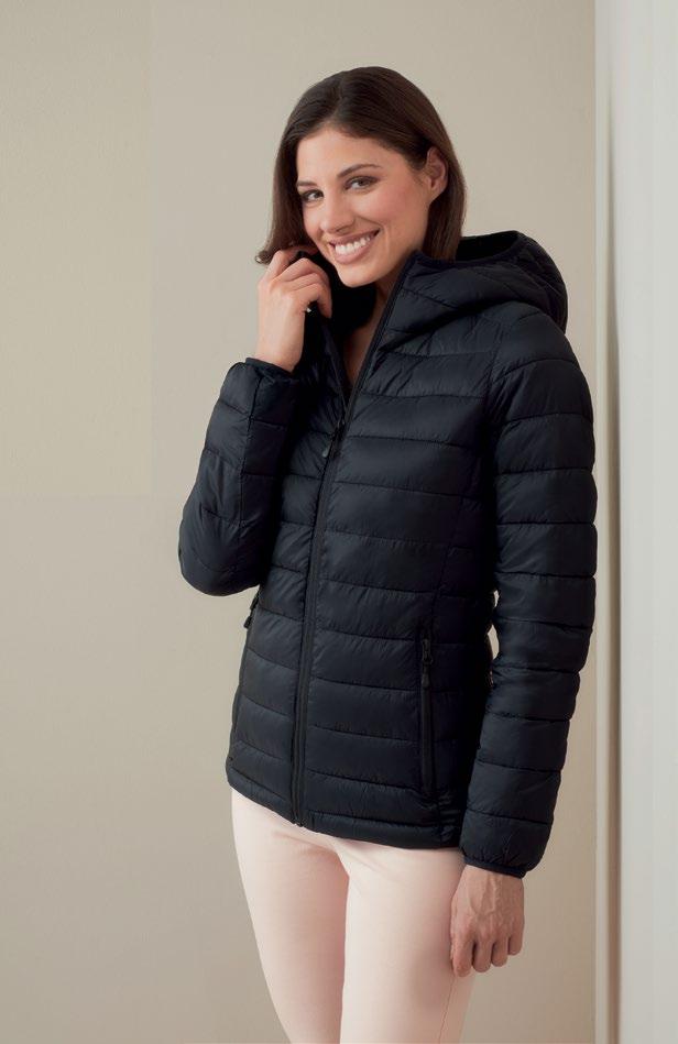 Hooded, unisex quilted jacket – lightweight yet provides excellent insulation. Can be folded into its own inner pocket for spacesaving convenience. Features a collar-integrated hood for extra warmth, SBS zip, storm flap, and adjustable bottom hem. Two zipped side pockets, one inner pocket, and a half-moon panel on the back for easy personalisation. Fluorine- and PFC-free.