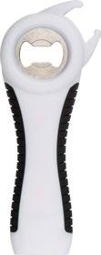 Swiss pocket knife with the following functions: large blade, caps opener, can opener with screwdriver, wire stripper, corkscrew, key ring, tweezers, toothpick.