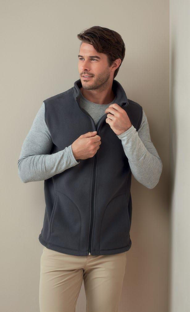 ST5110 • S-XL • 220 g/m² • 24 pcs/carton Women‘s fleece gilet crafted from 100% polyester, featuring a pillresistant fleece fabric that ensures breathability. The gilet is equipped with a matching zip closure, a stand-up collar, and two pockets.