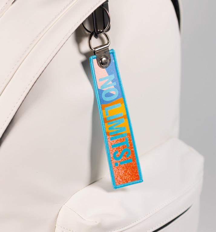 Embroidered key tag. Sizes: 13x3 cm / 10x2,5 cm / 6x1,5 cm.
