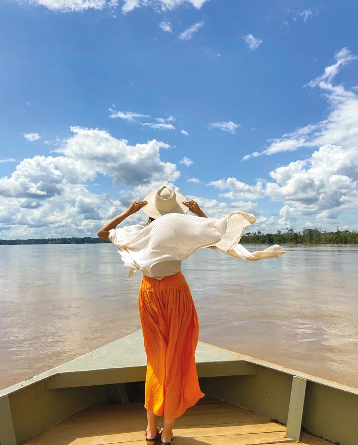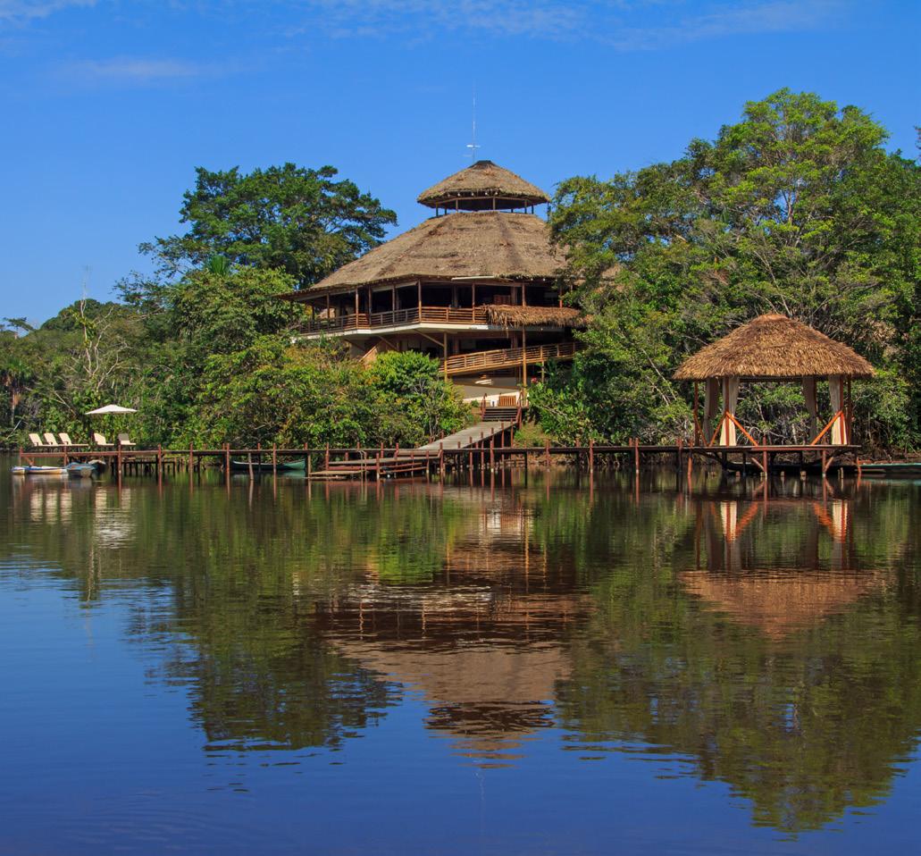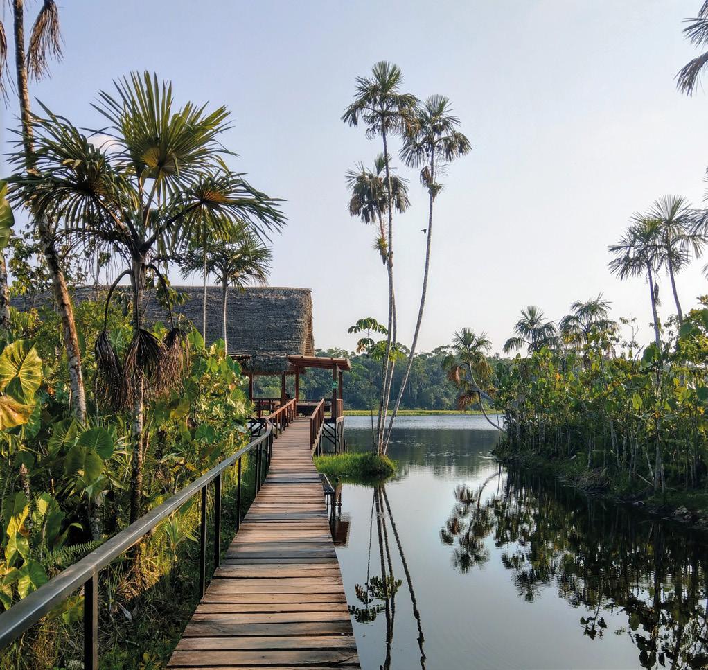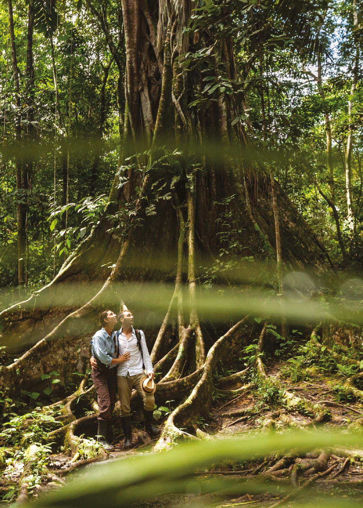 Delfin Amazon Cruises: top left, R.Rodrich top right, middle right, bottom right / Lucas Bustamante, tropicalherping. com bottom left / (p. 30) Sacha Lodge top / Spa, Inkaterra Reserva Amazonica bottom / (p. 31-32) Mount Gahinga Lodge / (p. 34 collage) Bisate Lodge, Wilderness Safaris top left / Gorillas Nest, One&Only top right, middle left, bottom right / Virunga Lodge bottom left / (p. 35 collage) Clouds