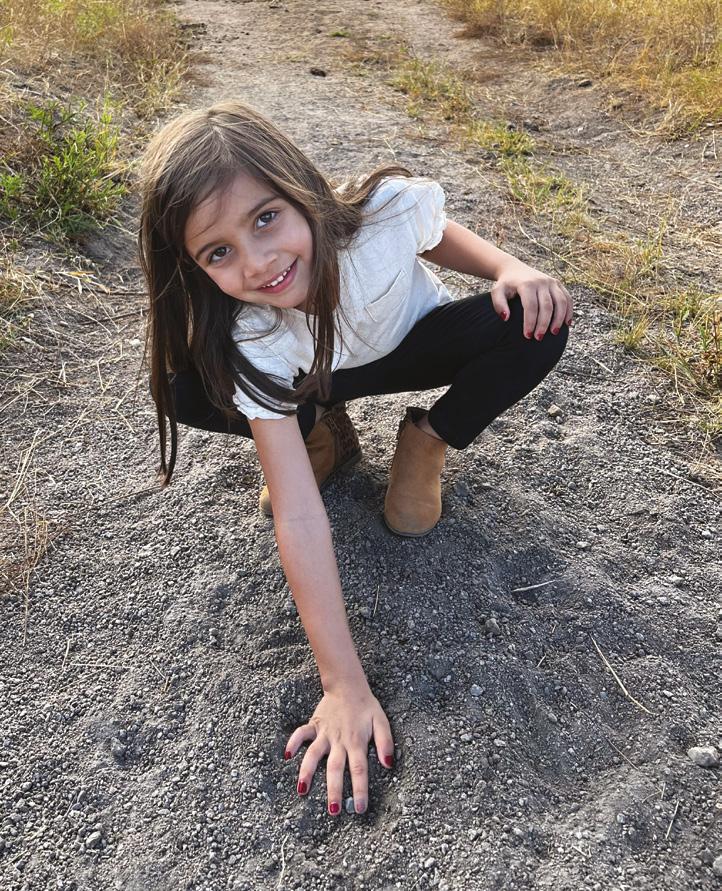 I’m starving and exhausted by the time we reach the truck; Bradley drives us quickly to a picnic table under a gnarled tree, spreads out a cloth, and lays out our picnic brunch—fruit salad, cereal, cheeses, meats, hardboiled eggs, juice, coffee, and hot chocolate. It all tastes better after an achievement of this magnitude—and in this setting, embraced by prehistoric dunes. Of course, they’re not static. Their cores are petrified, but their loose exteriors shape-shift due to the elements, yes, but also tourists like us. During the pandemic, there were so few people tromping around that sand nearly covered a several-foot-tall sign, Bradley tell us.