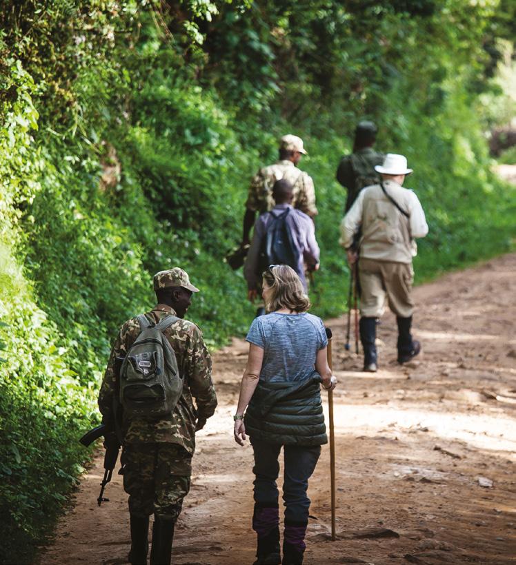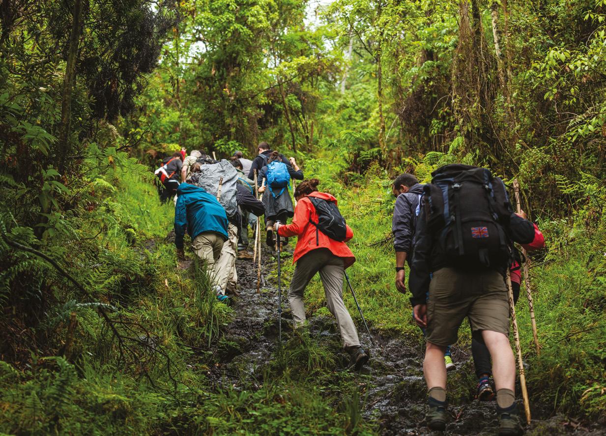 elevation gains of up to 7,500 feet in humid and muddy conditions. It’s a long drive from the capital (nine to 10 hours) to Bwindi, so we like to combine Uganda trekking into a five-day, or longer, safari to explore other areas of the country. If you can’t swing a few extra days, there are daily flights from Entebbe to Bwindi Impenetrable Forest.