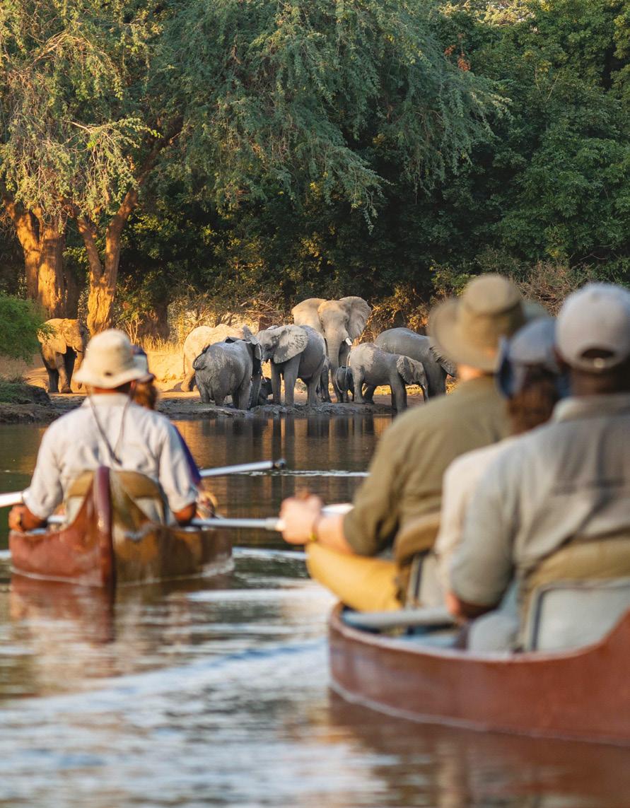 In the Republic of Congo’s remote northwest you’ll find one of Africa’s oldest national parks, OdzalaKokoua National Park, designated in 1935. An integral part of the Congo Basin—dubbed the lungs of Africa— Odzala has habitats ranging from primary forest to savannah, rivers, and baïs. Tremendous trees—ancient giants more than 165 feet tall—emerge into the canopy. The expanse of tree, bush, and marsh shelter shy African forest elephants, 430 species of birds, and over 100 mammals. Most significantly, it’s home to a huge population of Western lowland gorilla and a worldclass primate research facility. Trekking to see lowland gorillas is entirely different than visiting mountain gorillas—you must plough through dense forest, as they nest up in the trees and tend to be more timid. It’s hot, it’s muggy, and there are lots of insects, so you must be willing to tolerate some discomforts—but for the intrepid traveler, it is the opportunity of a lifetime to visit this pristine, untouched place. Also, the guiding is impeccable, the rainforest trails are breathtaking, and you’ll experience game drives across savannahs, boat safaris, kayaking, and wading through rivers, baïs, and swamps.