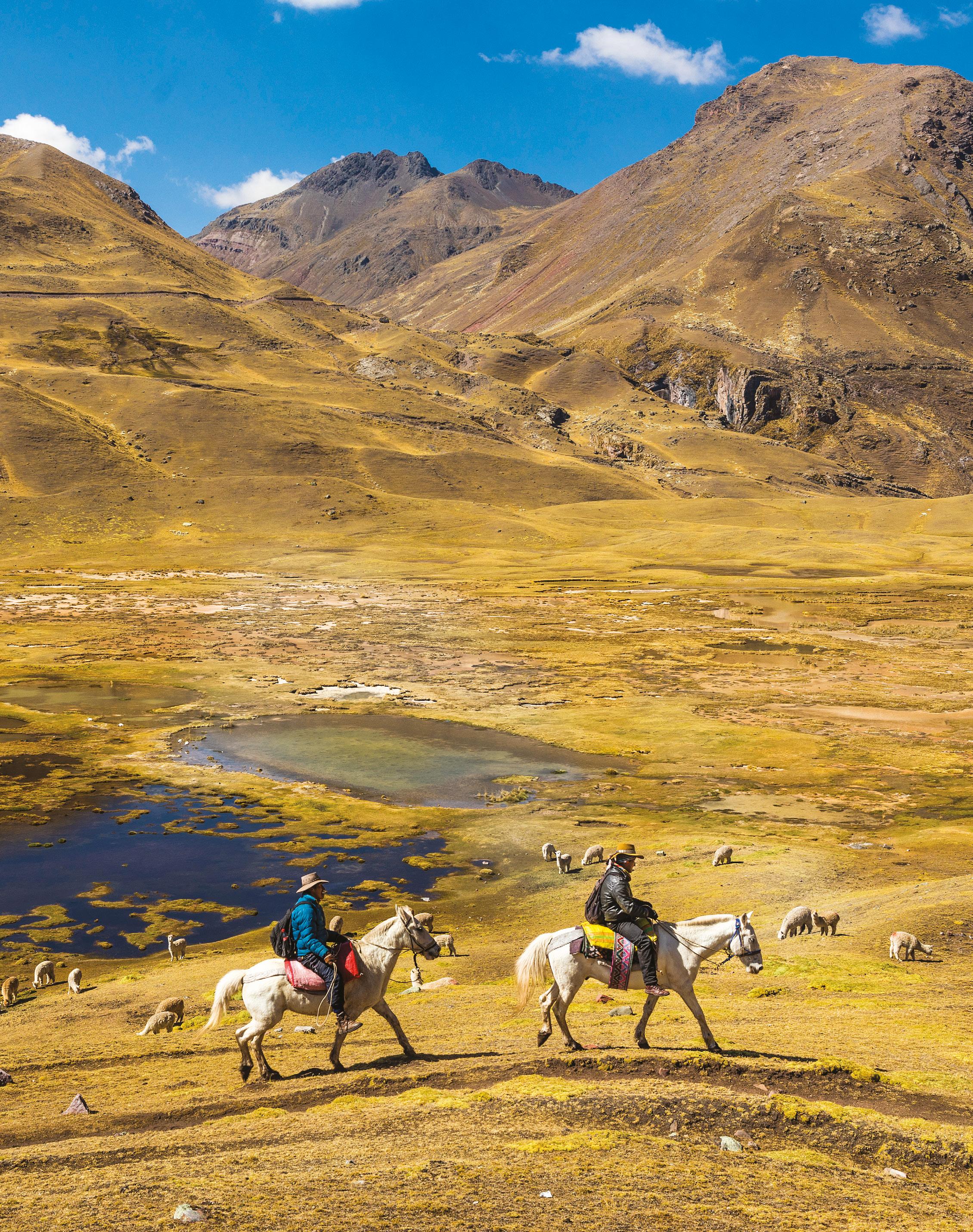 The lodges are culturally rich in every sip, taste, song, and story—and the journey is accompanied by the same hosts from each to the next. Each morning, hiking parties depart for the next lodge, sometimes joined by staff, making for a unique community-binding experience. Among them are alpaca and llama herders. Nobody knows an animal better than the people who take care of them, and the herders are the ones who help transport luggage and supplies. And with hikes at 15,000 to 17,000 feet high in elevation, every step is extra effort—you’ll be thankful the only thing to carry is a small bag.