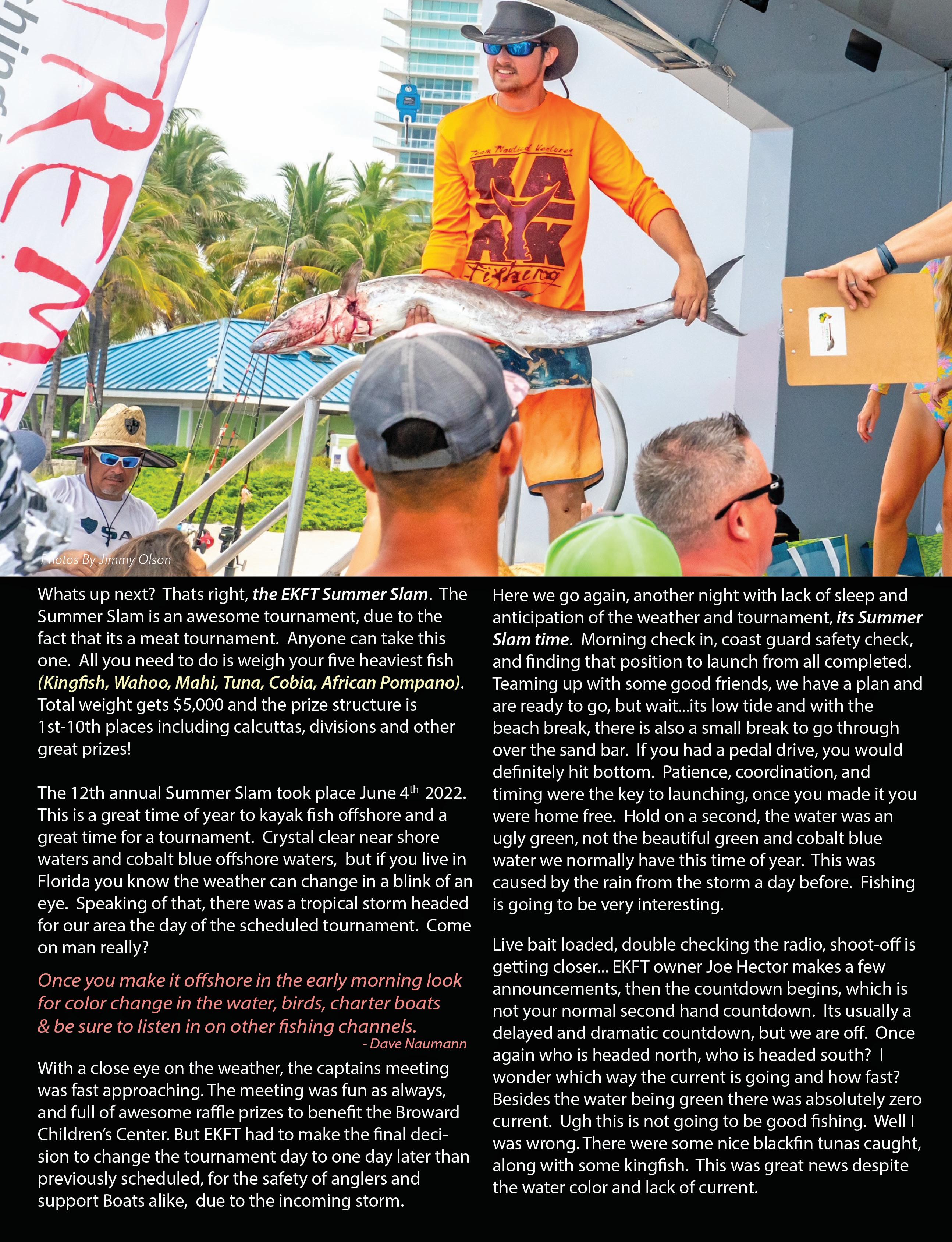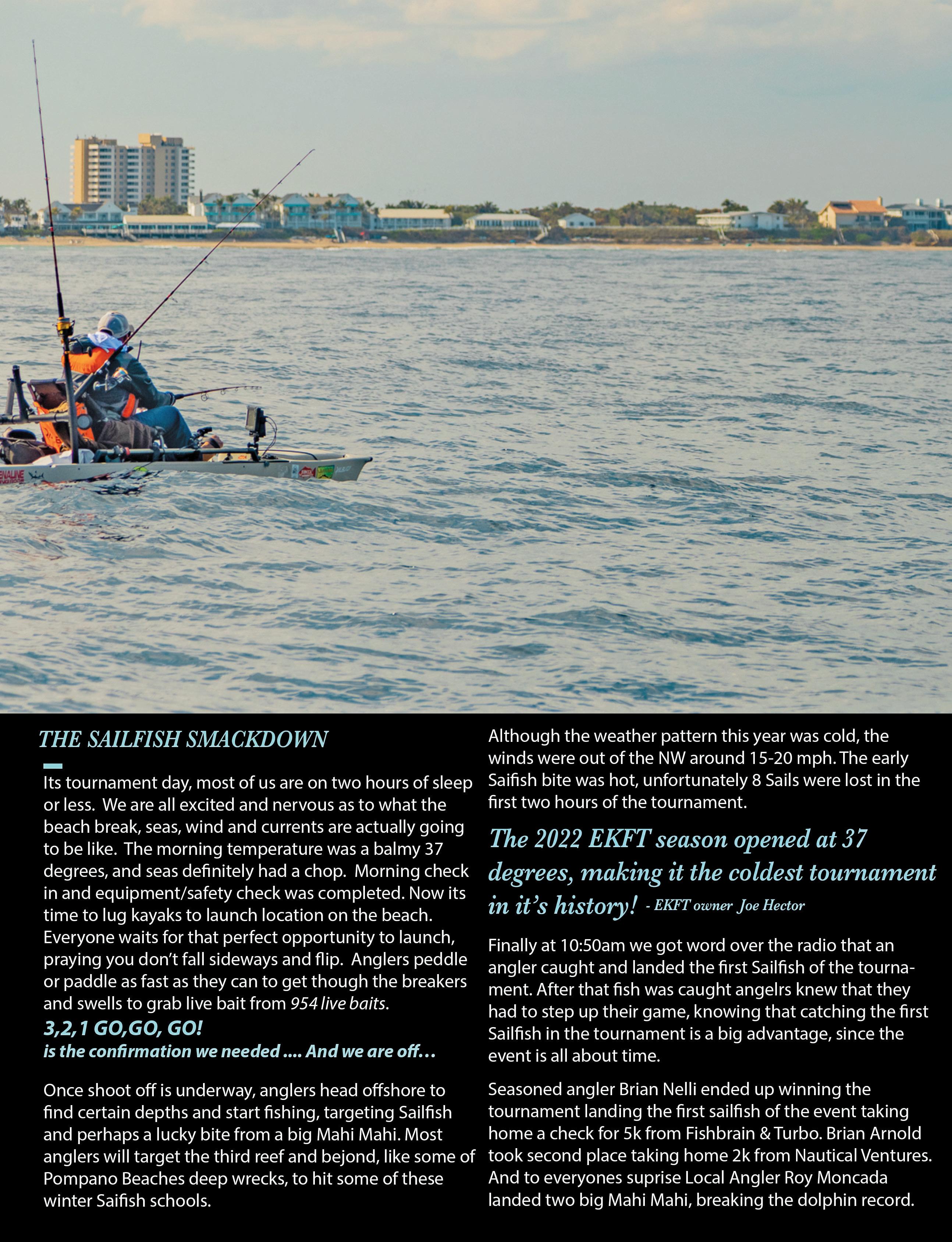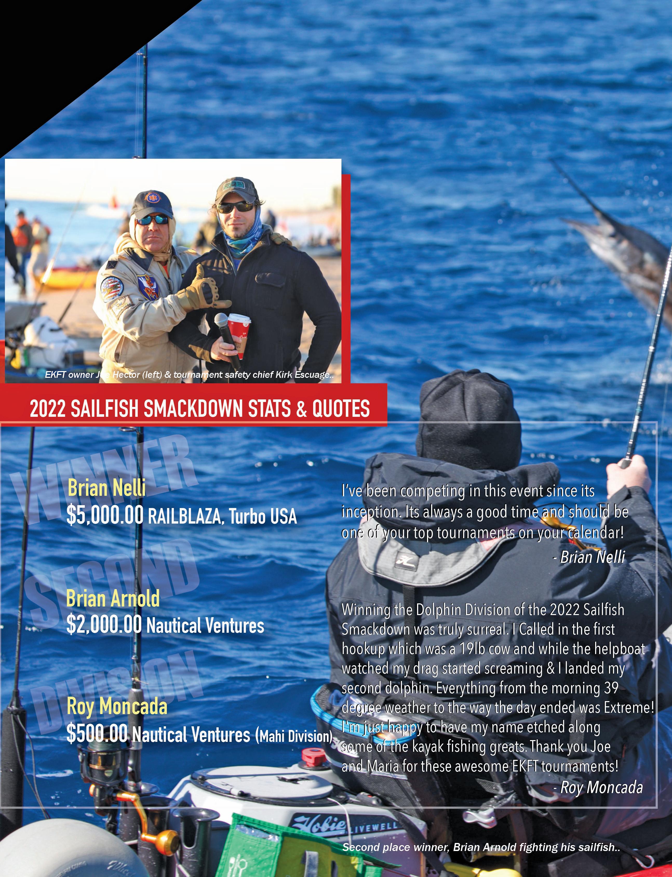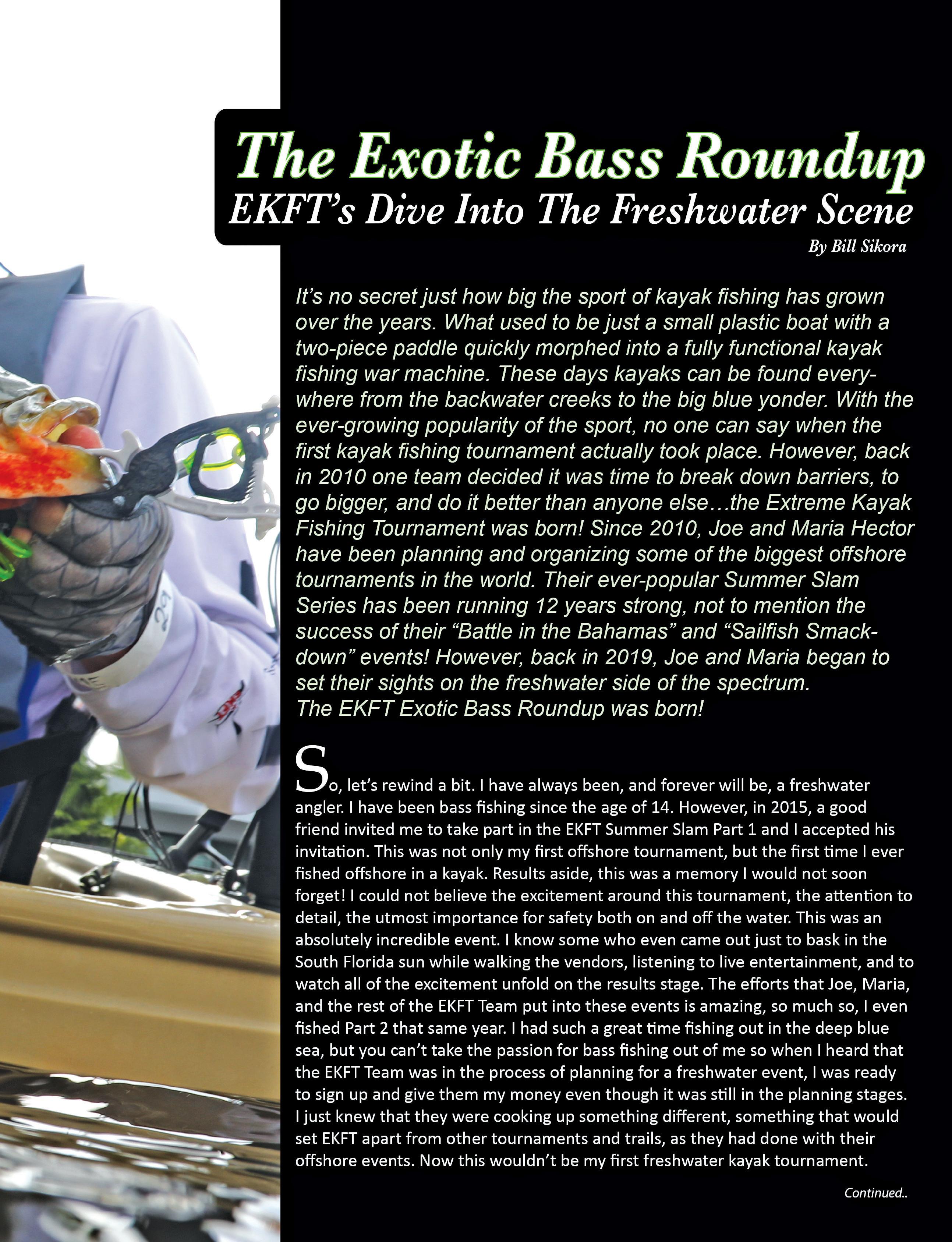 The Extreme Kayak Fishing magazine goes over the 2021, 2022 tournament season starting with the Sailfish Smackdown all the way to the Summer Slam Series. The magazine will also go over the 2021, 2022 Exotic Bass Roundup stats and more. This 40 page magazine will