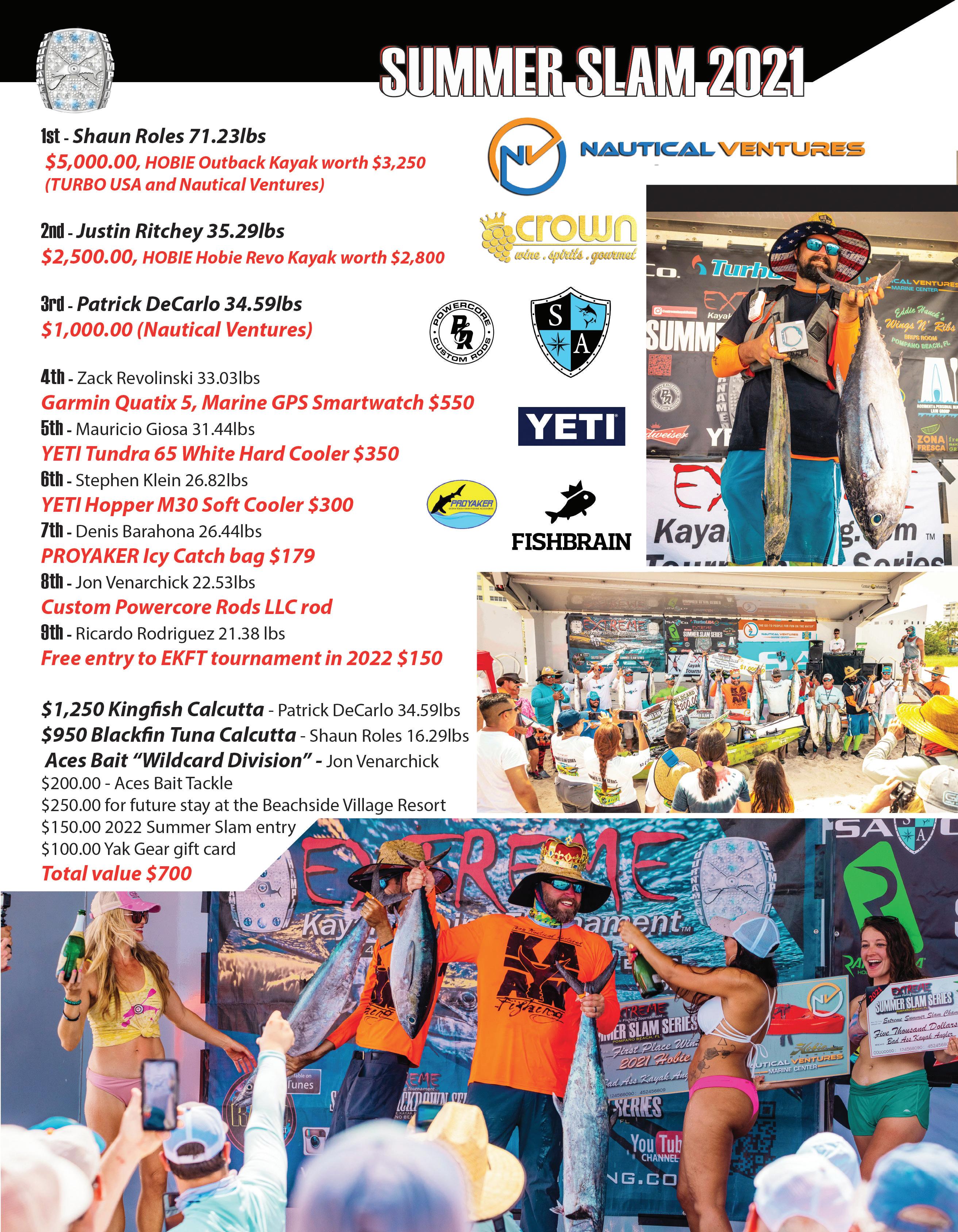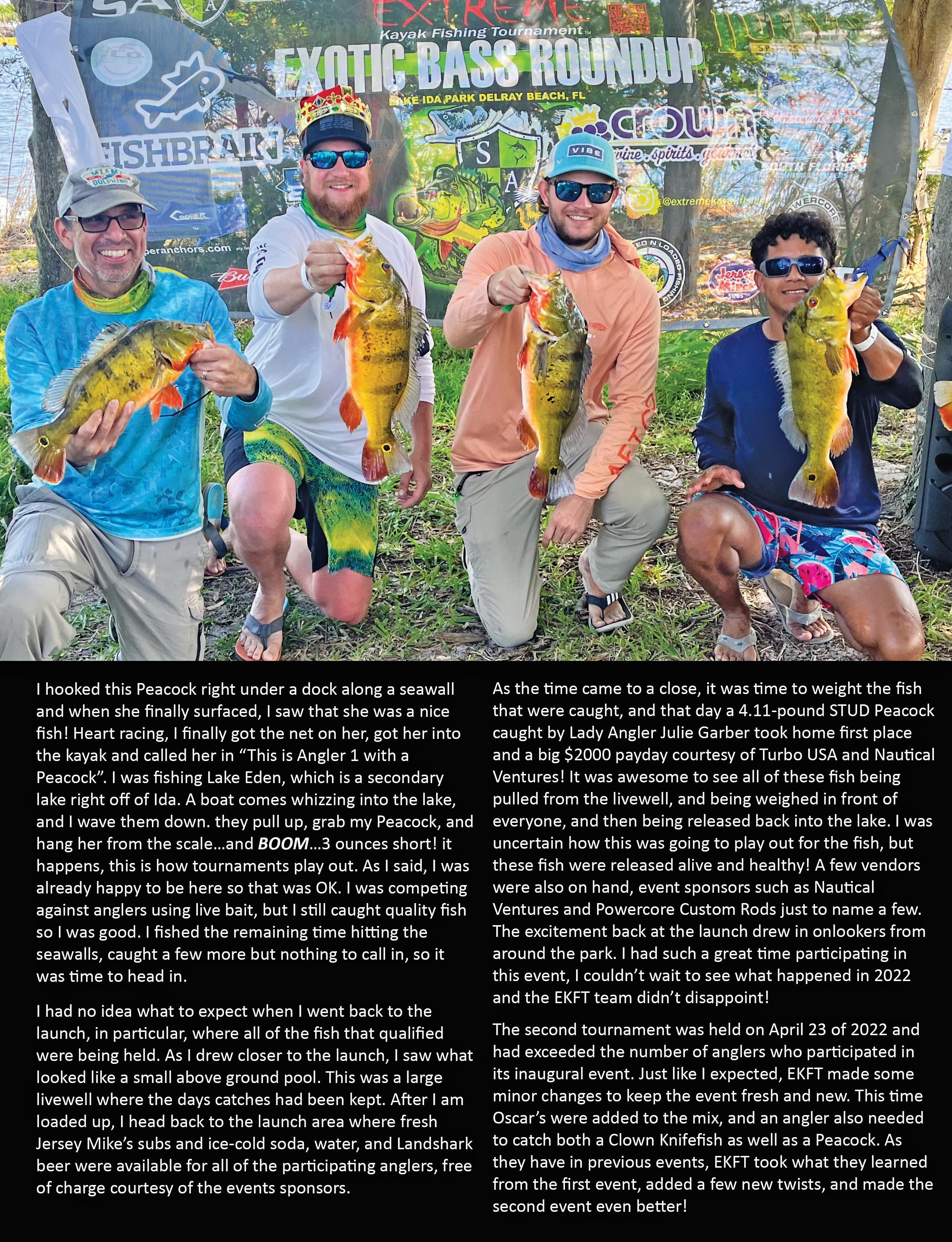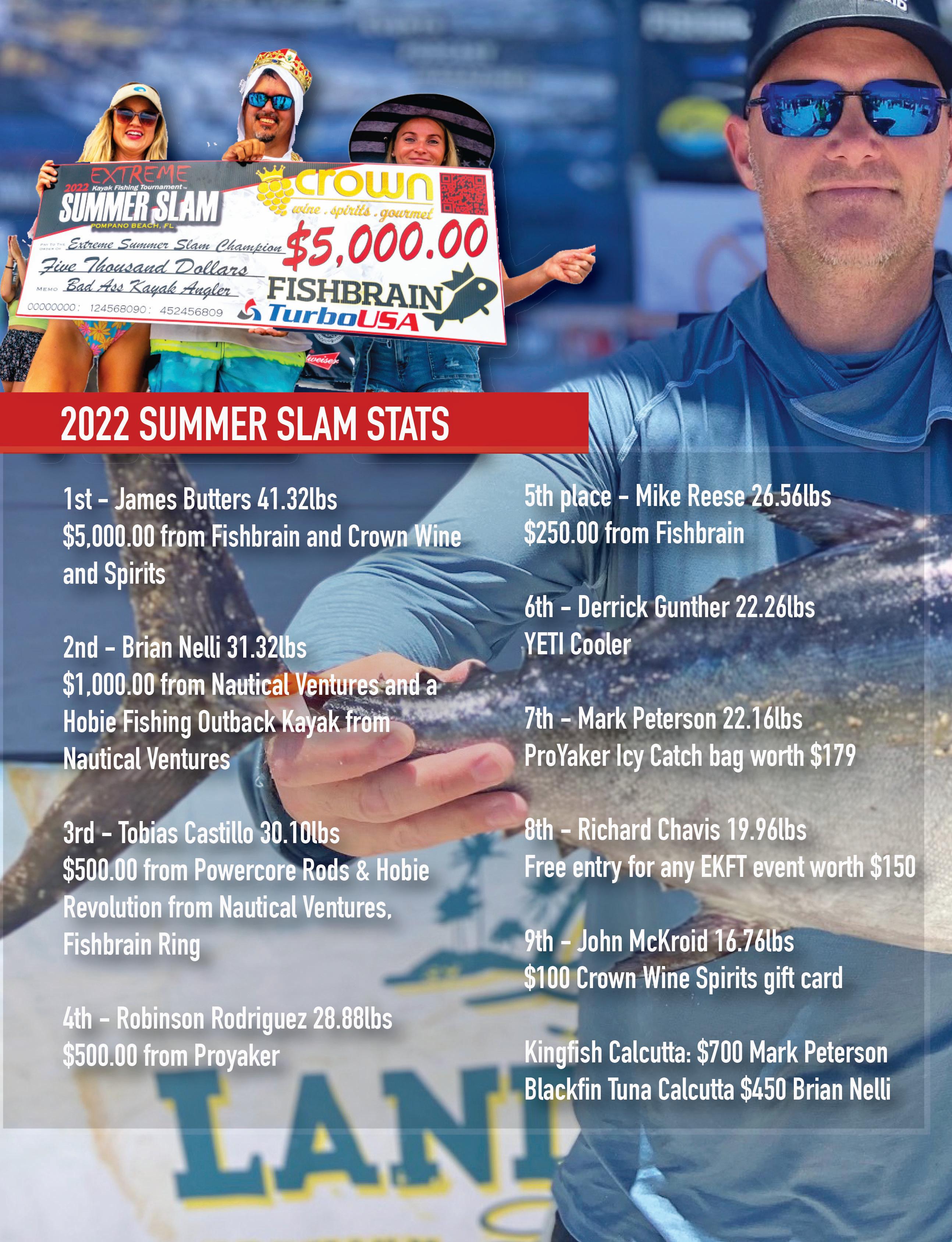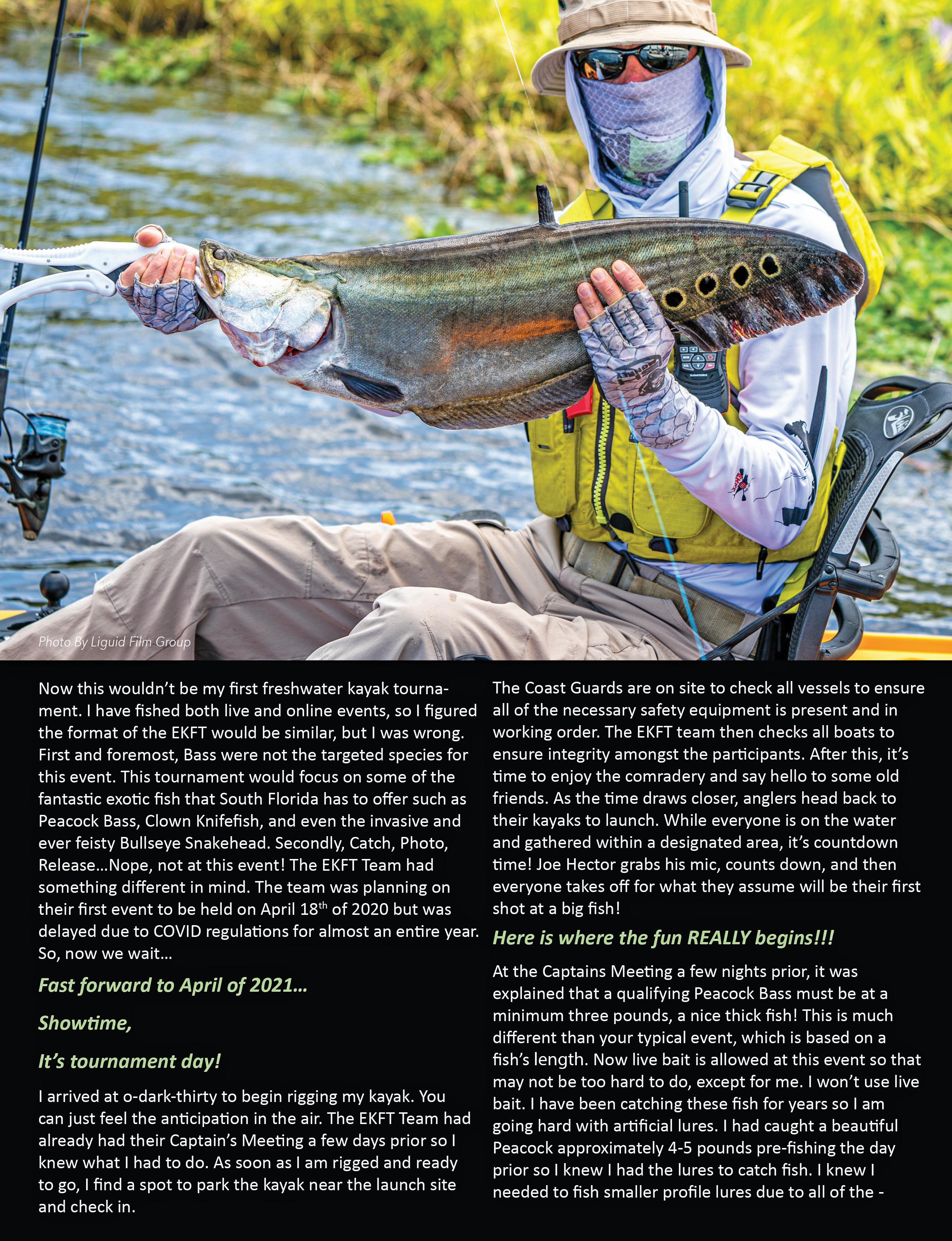 The Extreme Kayak Fishing magazine goes over the 2021, 2022 tournament season starting with the Sailfish Smackdown all the way to the Summer Slam Series. The magazine will also go over the 2021, 2022 Exotic Bass Roundup stats and more. This 40 page magazine will