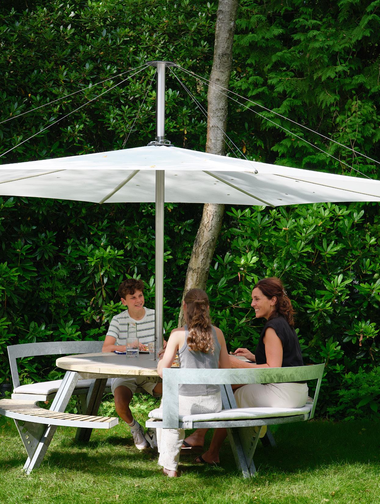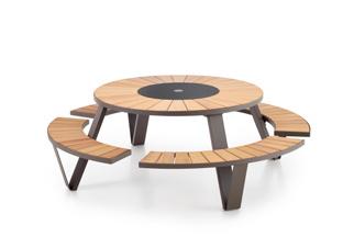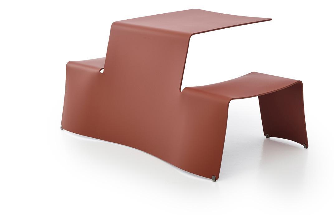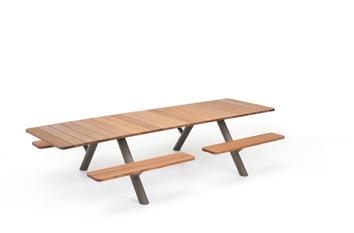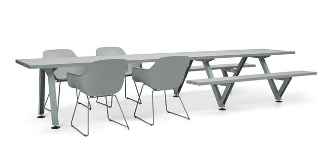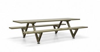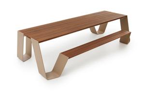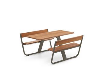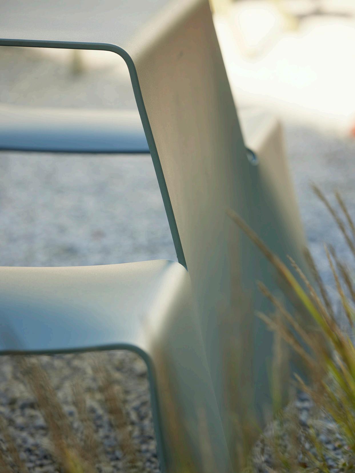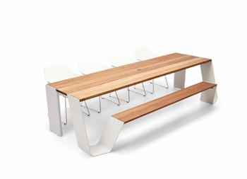 “Hopper is an example of a very successful re-design of the classic beer-garden bench. Based on the traditional “get-together” around a table, designer Dirk Wynants has produced an outdoor product with its very own style. This sculptural piece of garden furniture invites one to sit down and is functional and hardwearing in equal measure.”