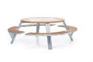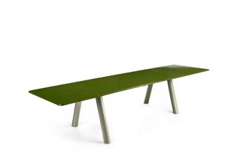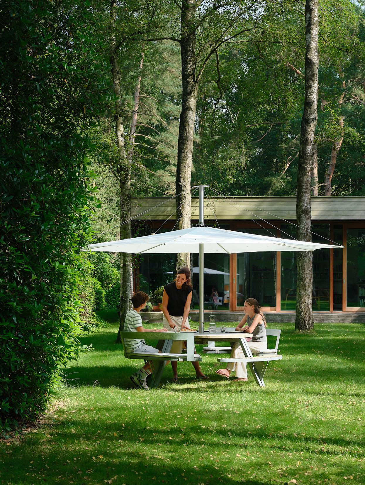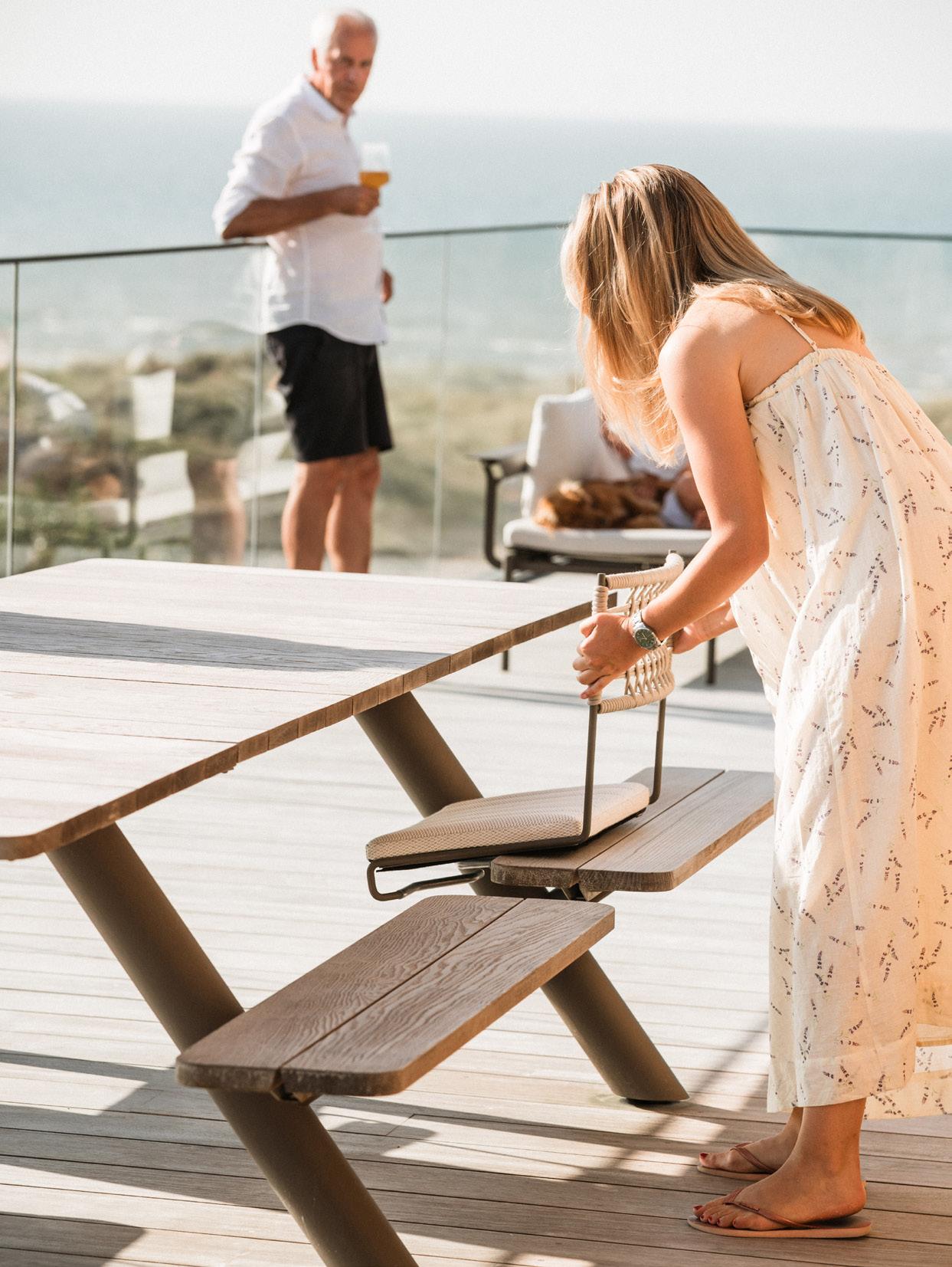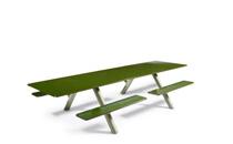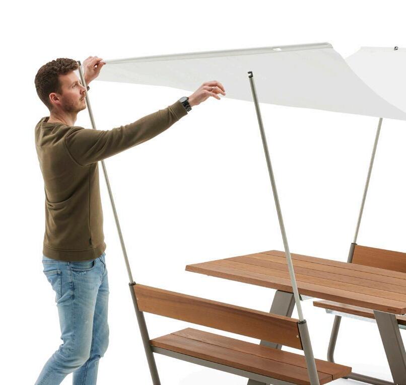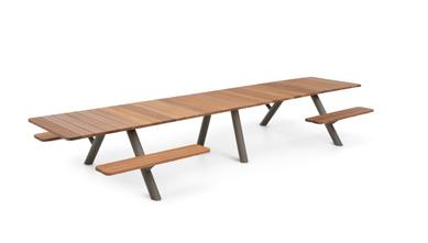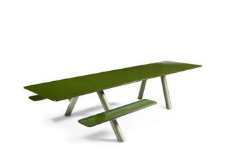 “Hopper is an example of a very successful re-design of the classic beer-garden bench. Based on the traditional “get-together” around a table, designer Dirk Wynants has produced an outdoor product with its very own style. This sculptural piece of garden furniture invites one to sit down and is functional and hardwearing in equal measure.”