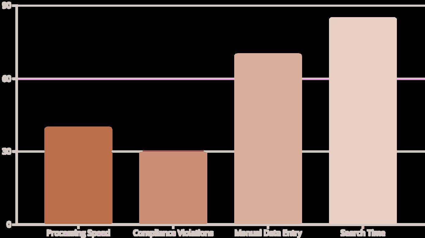 Organizations implementing modern document management solutions report transformative improvements across key performance metrics. The data tells a compelling story of efficiency gains and risk reduction.
